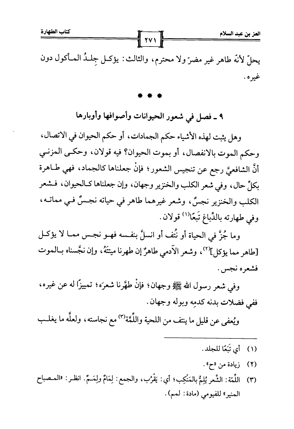 9 - فصل في شعور الحيوانات وأصوافها وأوبارها