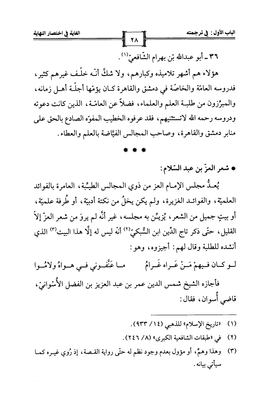 * شعر العزّ بن عبد السلام: