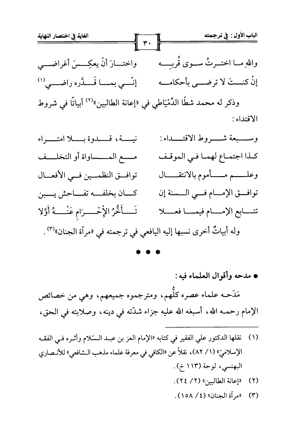 وذكر له محمد شطّا الدِّمْيَاطي في "إعانة الطالبين" (¬2) أبياتًا في شروط الاقتداء: