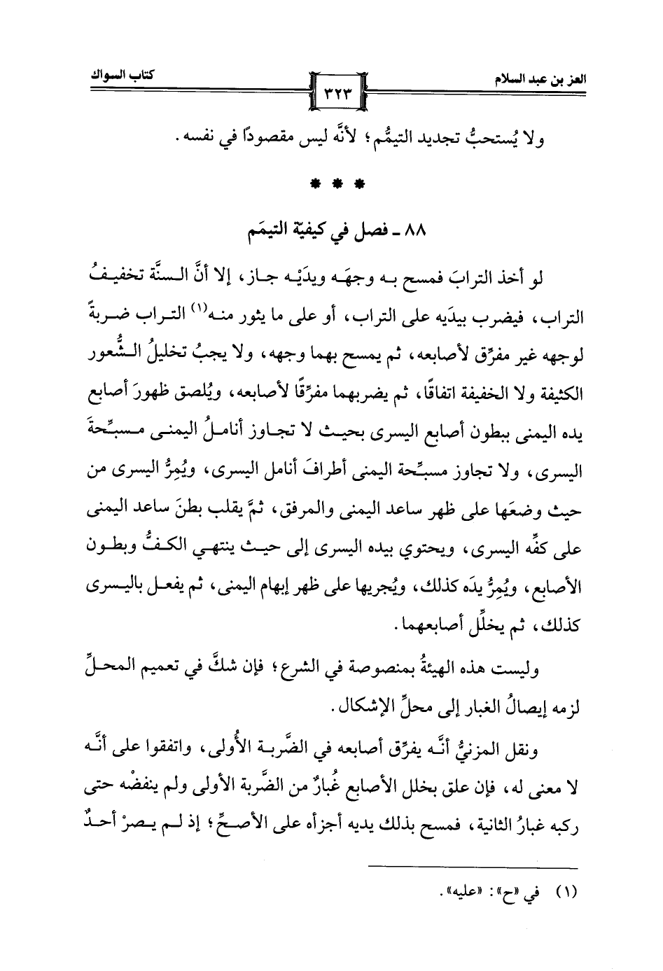 وليست هذه الهيئةُ بمنصوصة في الشرع؛ فإن شكَّ في تعميم المحلِّ لزمه إيصالُ الغبار إلى محلِّ الإشكال.