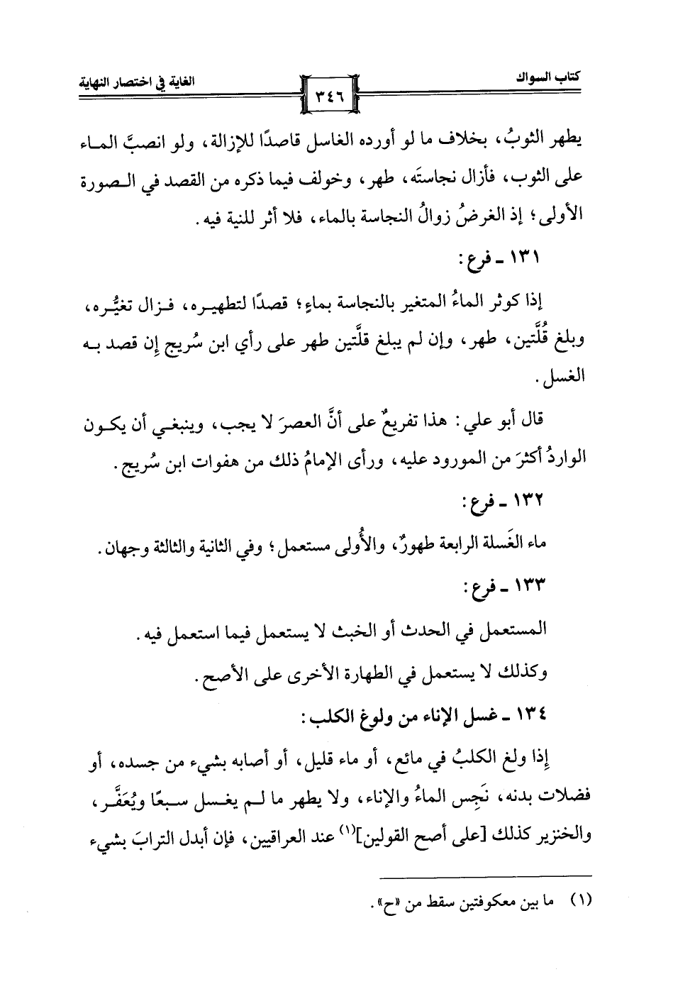 ماء الغَسلة الرابعة طهورٌ، والأُولى مستعمل؛ وفي الثانية والثالثة وجهان.