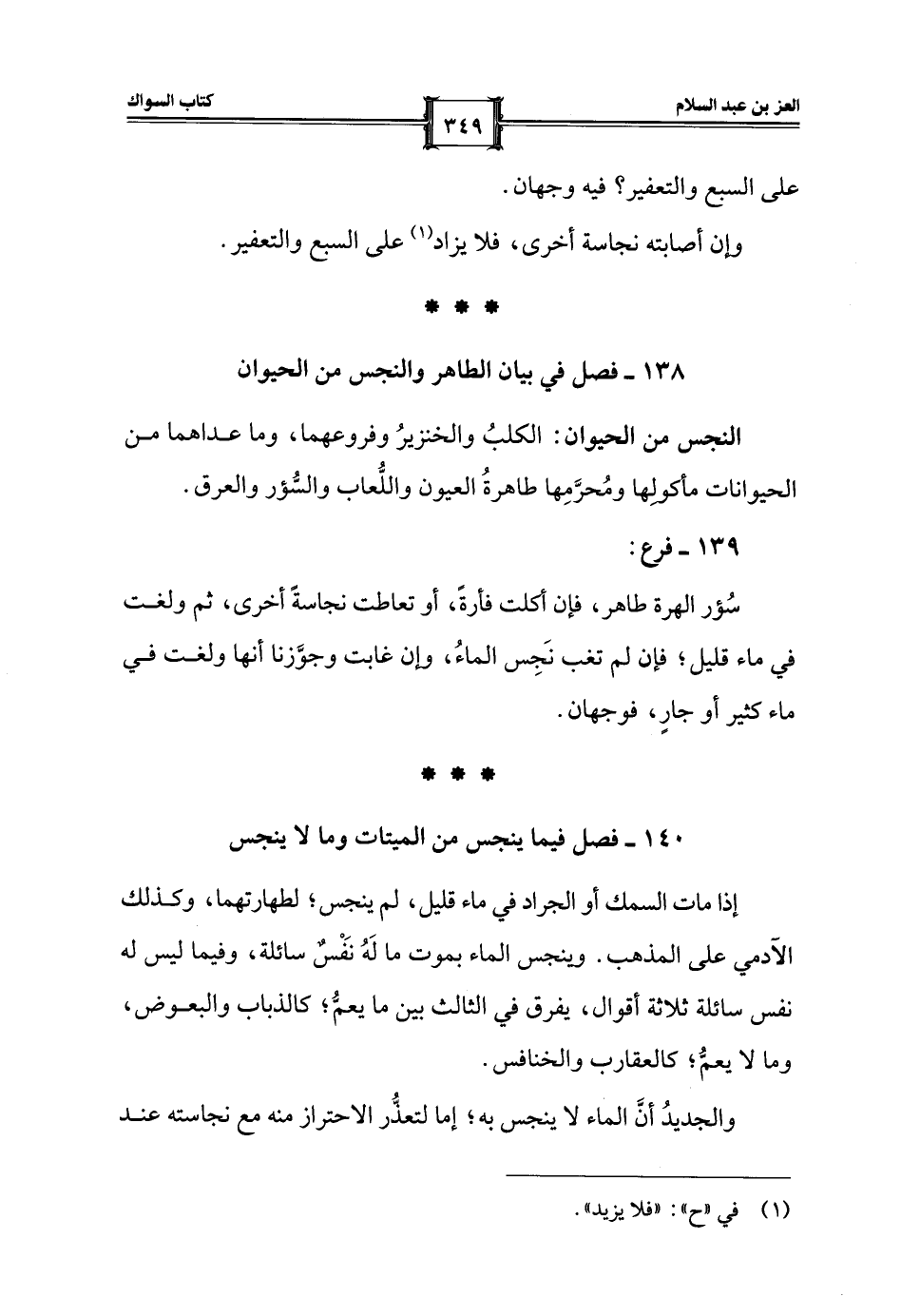 138 - فصل في بيان الطاهر والنجس من الحيوان