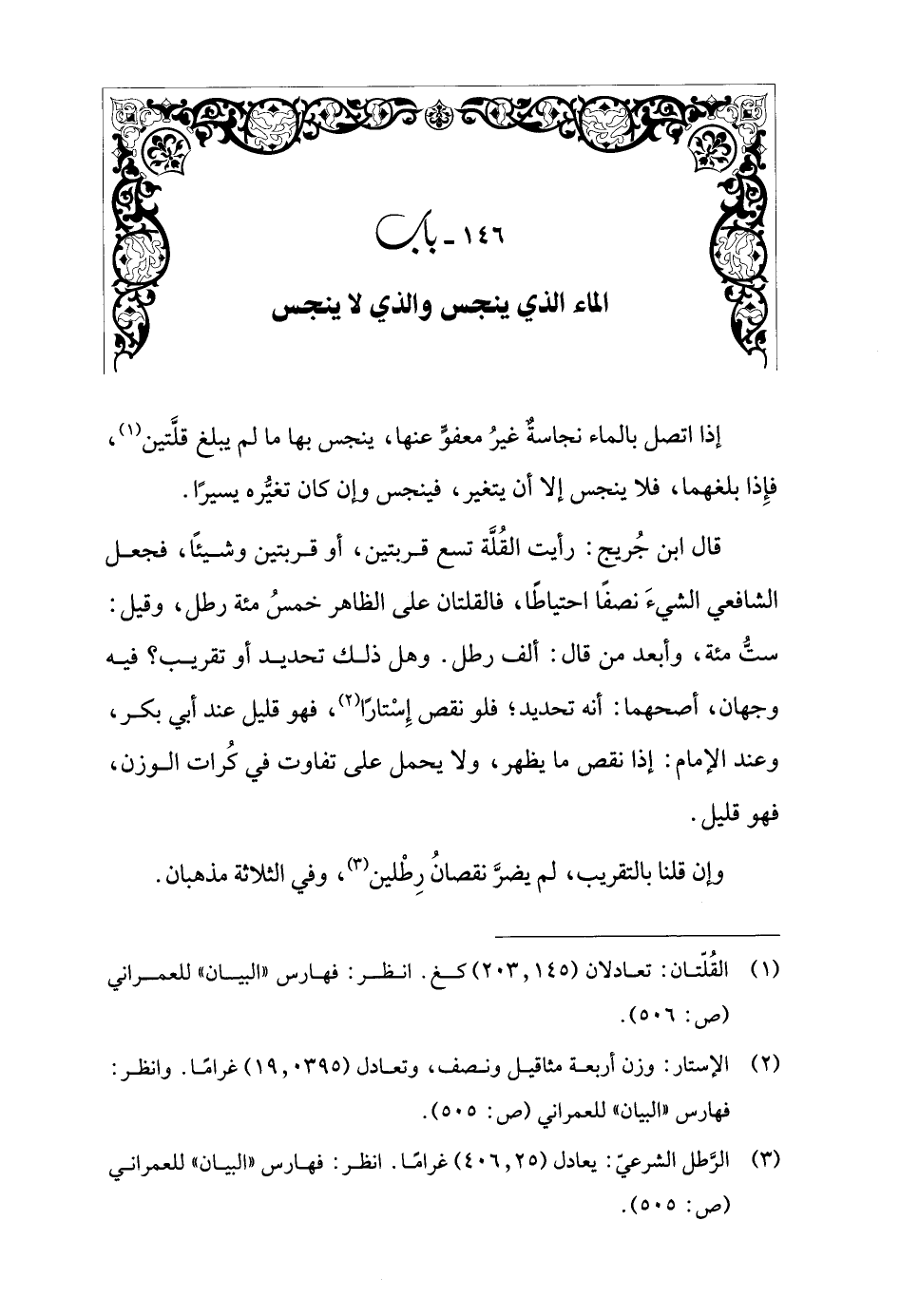 (¬1) القُلّتان: تعادلان (203.145) كغ. انظر: فهارس "البيان" للعمراني (ص: 506).