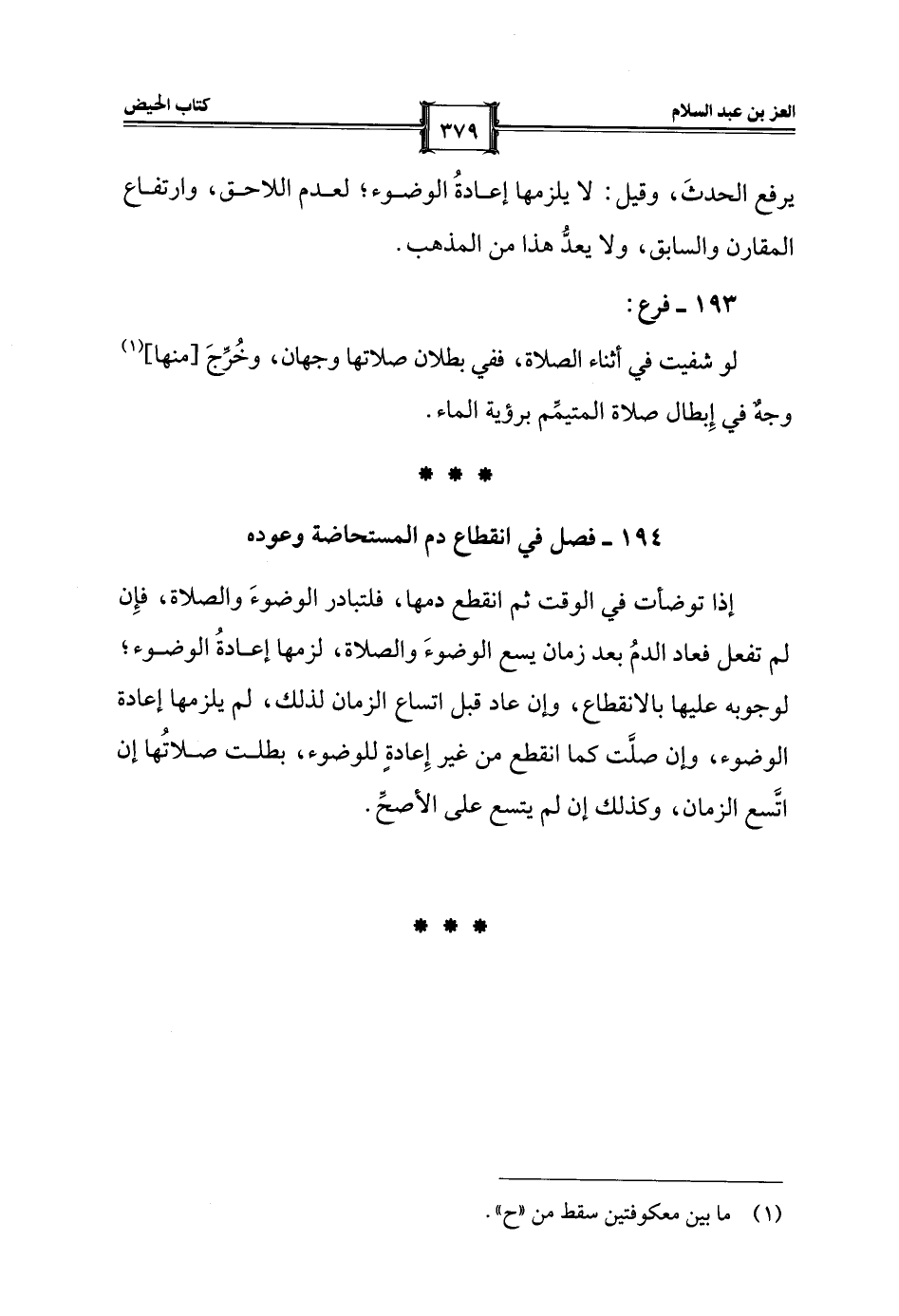 194 - فصل في انقطاع دم المستحاضة وعوده