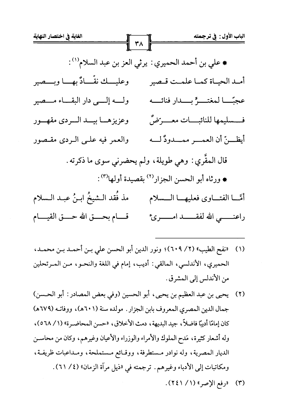 * علي بن أحمد الحميري: يرثي العز بن عبد السلام (¬1):