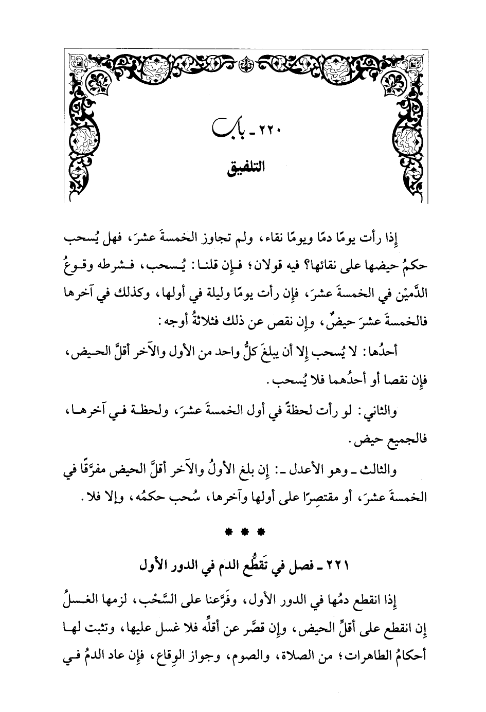 221 - فصل في تَقطُّع الدم في الدور الأول