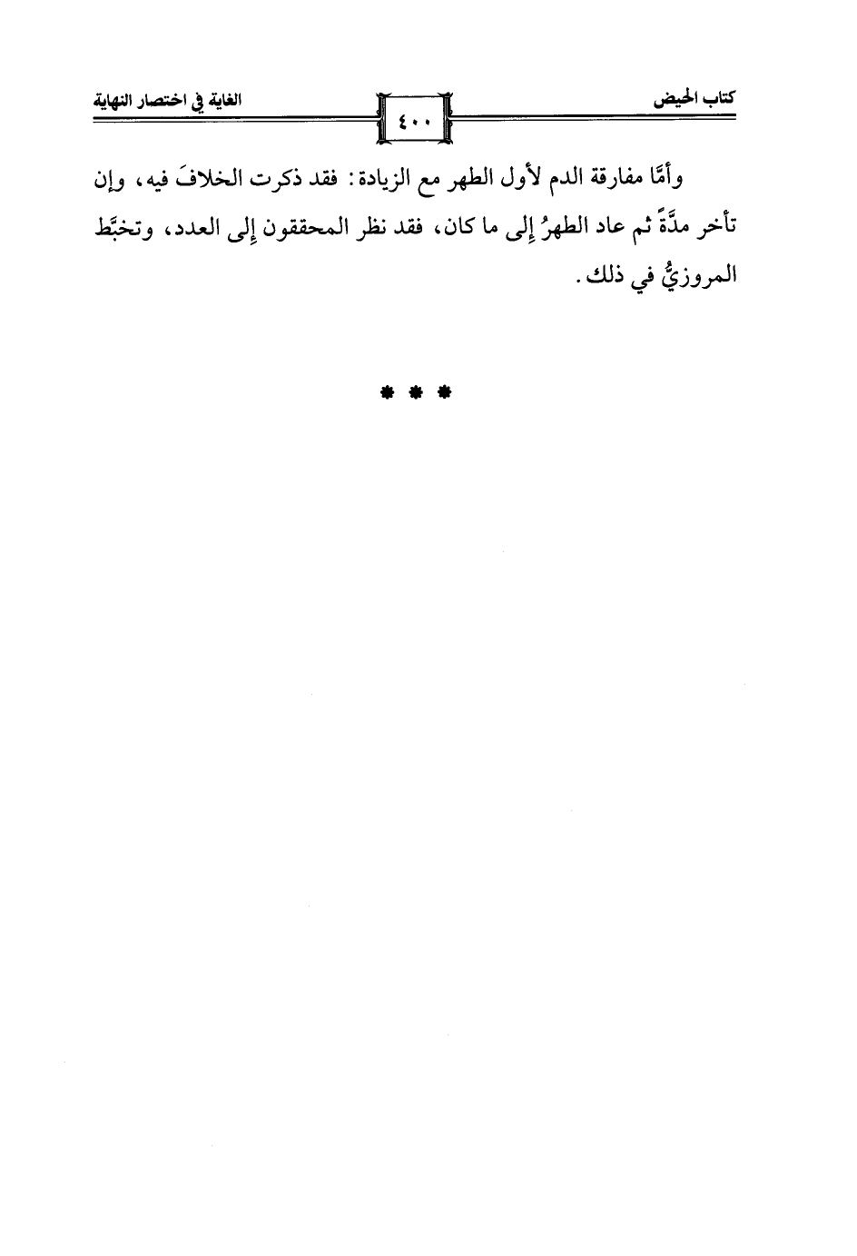وأمَّا مفارقة الدم لأول الطهر مع الزيادة: فقد ذكرت الخلافَ فيه، وإن تأخر مدَّة ثم عاد الطهرُ إِلى ما كان، فقد نظر المحققون إِلى العدد، وتخبَّط المروزيُّ في ذلك.