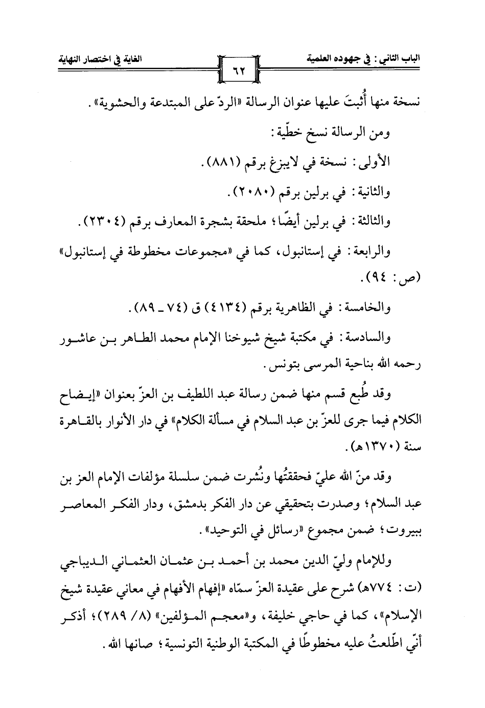 وقد منّ الله عليّ فحققتُها ونشُرت ضمن سلسلة مؤلفات الإمام العز بن عبد السلام؛ وصدرت بتحقيقي عن دار الفكر بدمشق، ودار الفكر المعاصر ببيروت؛ ضمن مجموع "رسائل في التوحيد".
