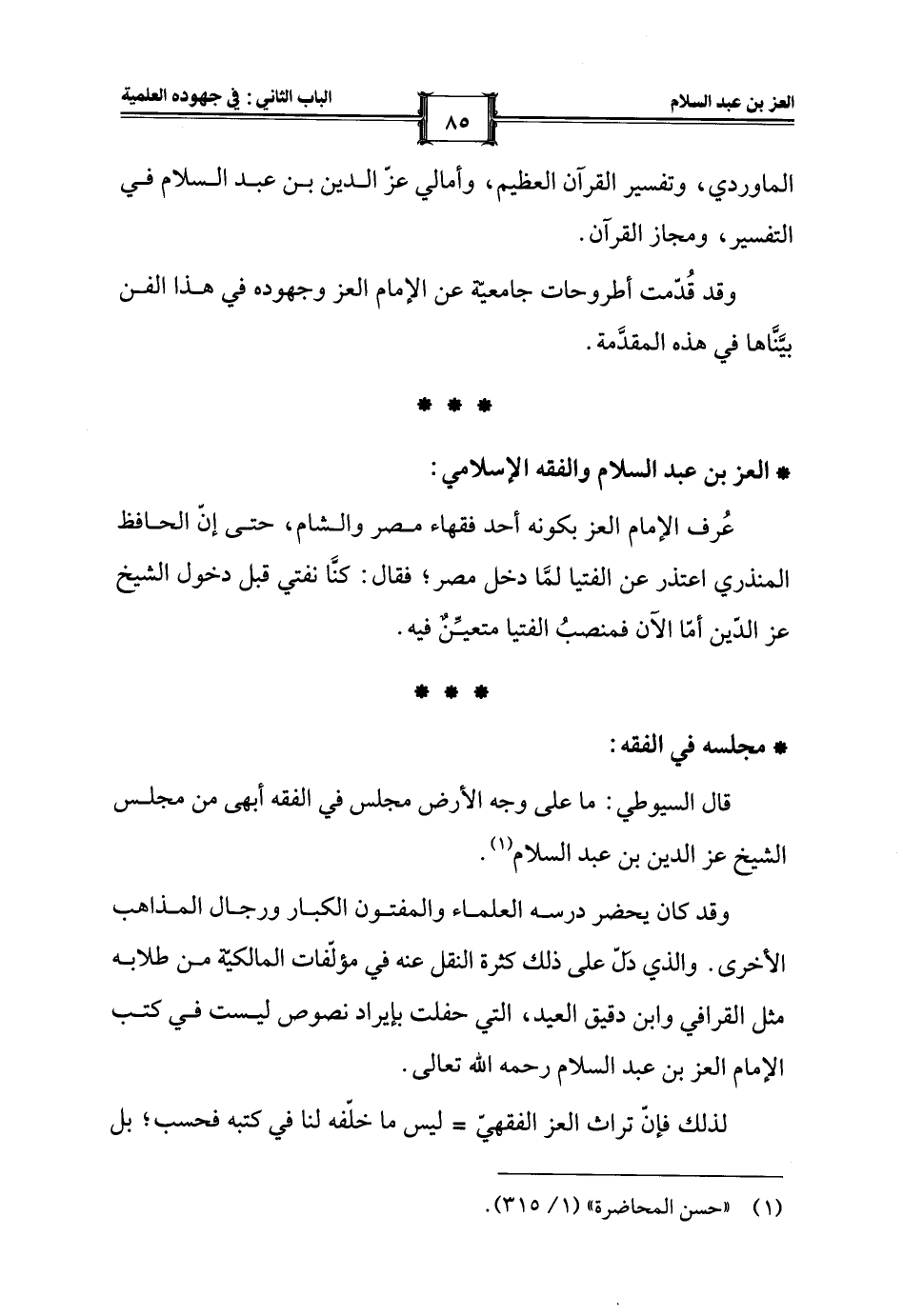 وقد قُدِّمت أطروحات جامعية عن الإمام العز وجهوده في هذا الفن بيَّنَّاها في هذه المقدِّمة.