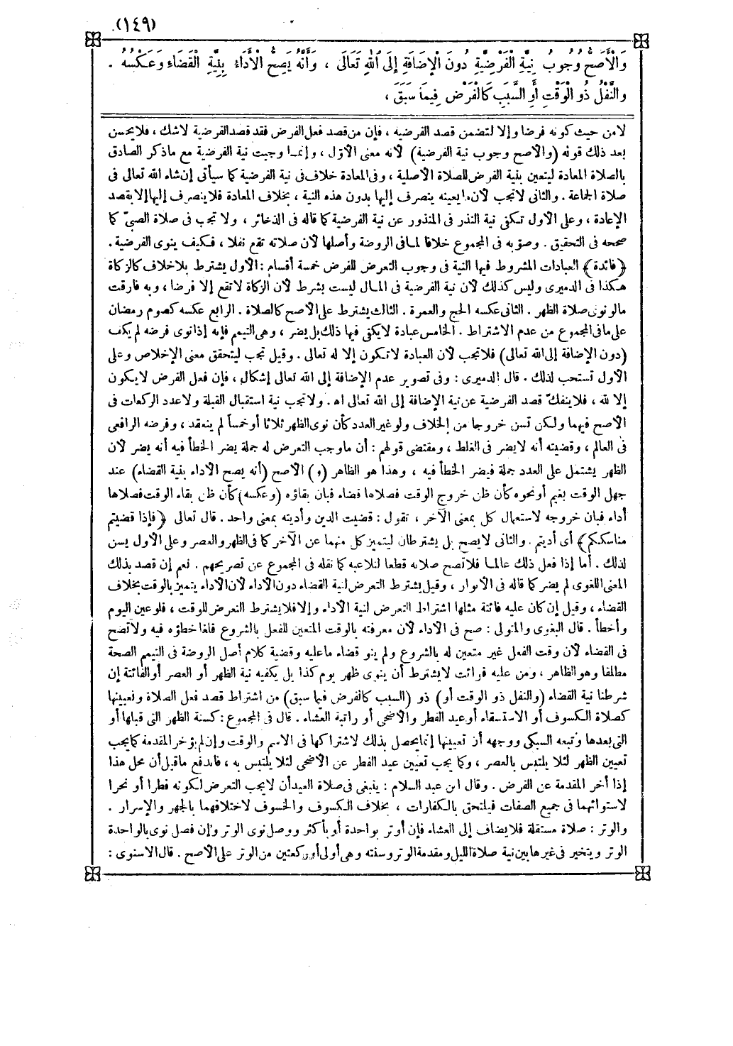 ومن عليه فوائت لا يشترط أن ينوي ظهر يوم كذا بل يكفيه نية الظهر أو العصر أو الفائتة إن شرطنا نية القضاء