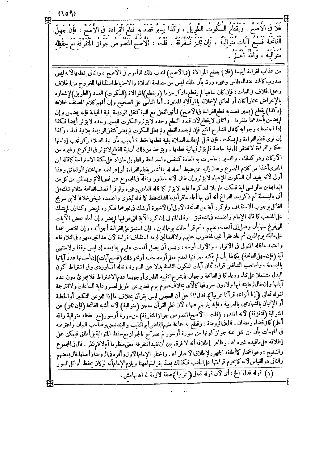 وجوابه كما قال الشارح المنع فإن لم يقصد القطع ولم يطل السكوت لم يضر كثقل الوديعة بلا نية تعد وكذا إن نوى قطع القراءة ولم يسكت
