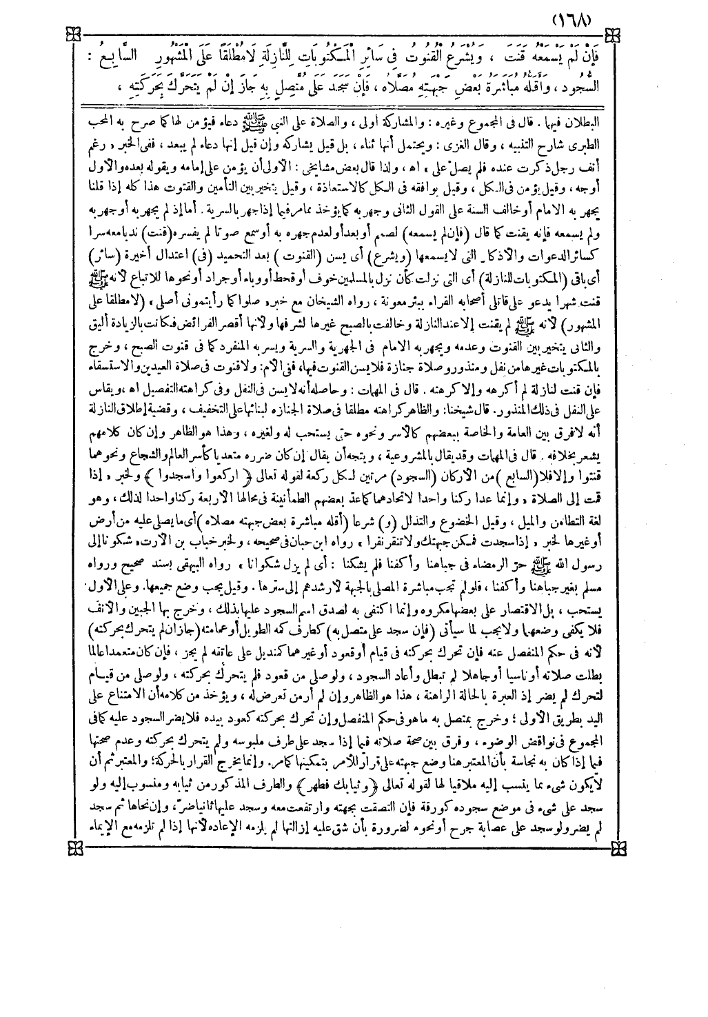 ( ويشرع ) أي يسن ( القنوت ) بعد التحميد ( في ) اعتدال أخيرة ( سائر ) أي باقي ( المكتوبات للنازلة ) أي التي نزلت كأن نزل بالمسلمين خوف أو قحط أو وباء أو جراد أو نحوها للاتباع لأنه صلى الله عليه وسلم قنت شهرا يدعو على قاتلي أصحابه القراء ببئر معونة رواه الشيخان مع خبر صلوا كما رأيتموني أصلي