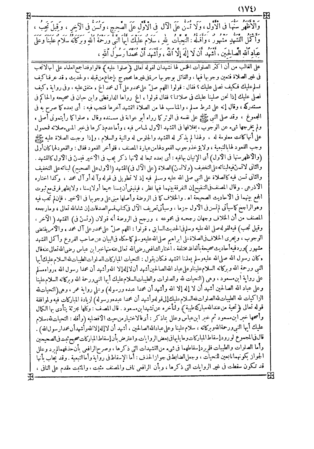 على الغالب من أن أكثر الصلوات الخمس لها تشهدان لقوله تعالى { صلوا عليه } قالوا وقد أجمع العلماء على أنها لا تجب في غير الصلاة فتعين وجوبها فيها والقائل بوجوبها مرة في غيرها محجوج بإجماع من قبله ولحديث قد عرفنا كيف نسلم عليك فكيف نصلي عليك فقال قولوا اللهم صل على محمد وعلى آل محمد إلخ متفق عليه وفي رواية كيف نصلي عليك إذا نحن صلينا عليك في صلاتنا فقال قولوا إلخ رواها الدارقطني وابن حبان في صحيحه والحاكم في مستدركه وقال إنه على شرط مسلم