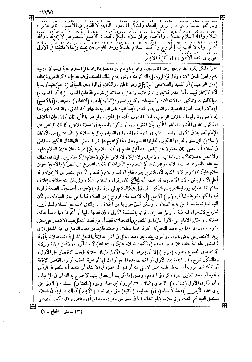 ( الثاني عشر ) من الأركان ( السلام ) لخبر مسلم تحريمها التكبير وتحليلها التسليم قال الحاكم صحيح على شرط مسلم