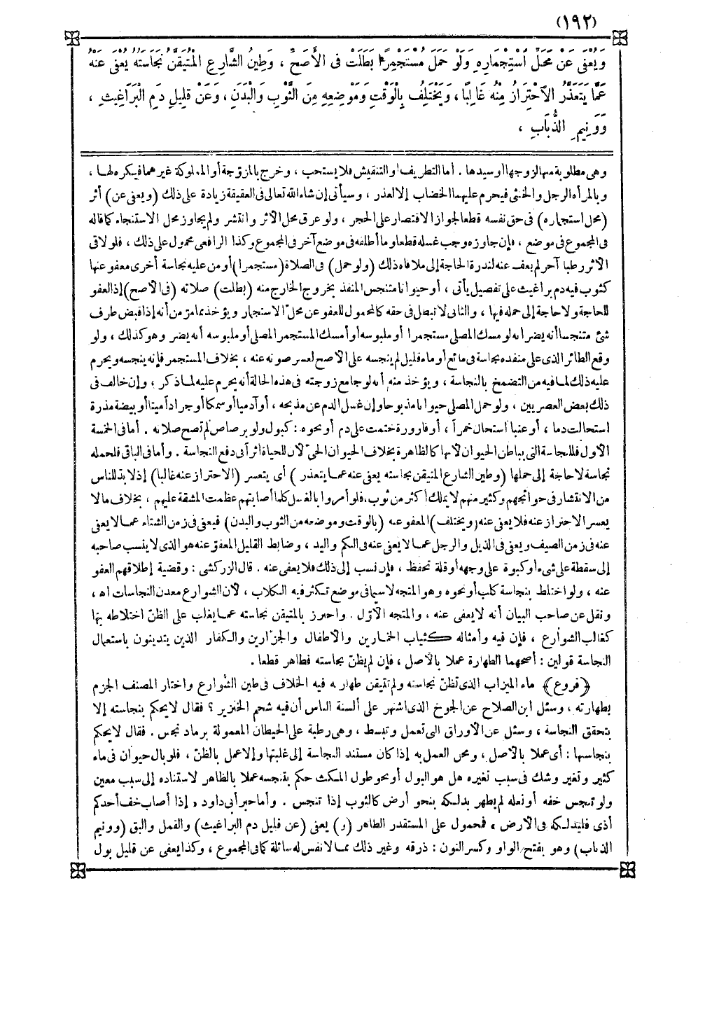 ( ويعفى عن ) أثر ( محل استجماره ) في حق نفسه قطعا لجواز الاقتصار على الحجر ولو عرق محل الأثر وانتشر ولم يجاوز محل الاستنجاء كما قاله في المجموع في موضع فإن جاوزه وجب غسله قطعا وما أطلقه في موضع آخر في المجموع وكذا الرافعي محمول على ذلك
