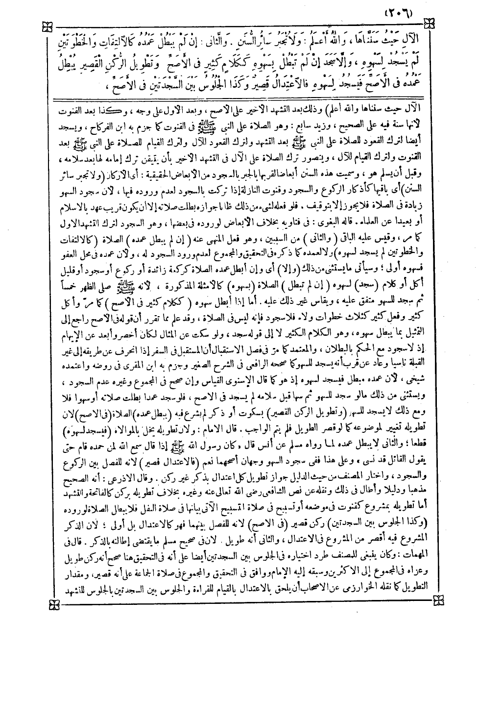 (ولا تجبر سائر السنن) أي باقيها كأذكار الركوع والسجود وقنوت النازلة إذا تركت بالسجود لعدم وروده فيها لأن سجود السهو زيادة في الصلاة فلا يجوز إلا بتوقيف فلو فعله لشيء من ذلك ظانا جوازه بطلت صلاته إلا أن يكون قريب عهد بالإسلام أو بعيدا عن العلماء