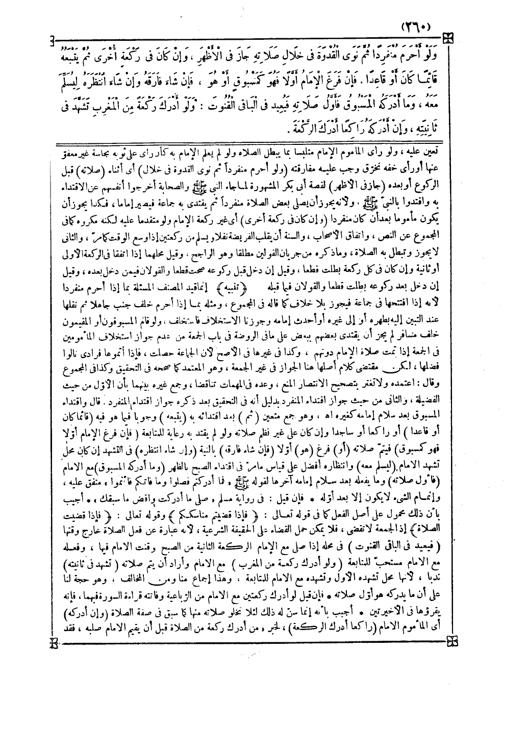 وعده في المهمات تناقضا وجمع غيره بينهما بأن الأول من حيث الفضيلة والثاني من حيث جواز اقتداء المنفرد بدليل أنه في التحقيق بعد ذكره جواز اقتداء المنفرد قال واقتداء المسبوق بعد سلام إمامه كغيره اه