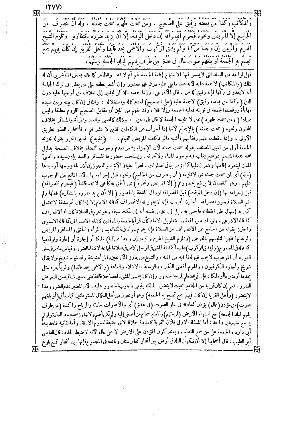 نعم إن كان قريبا من الجامع بحيث لا يتضرر بذلك ينبغي وجوب الحضور عليه لأن المعتبر عدم الضرر وهذا لا يتضرر