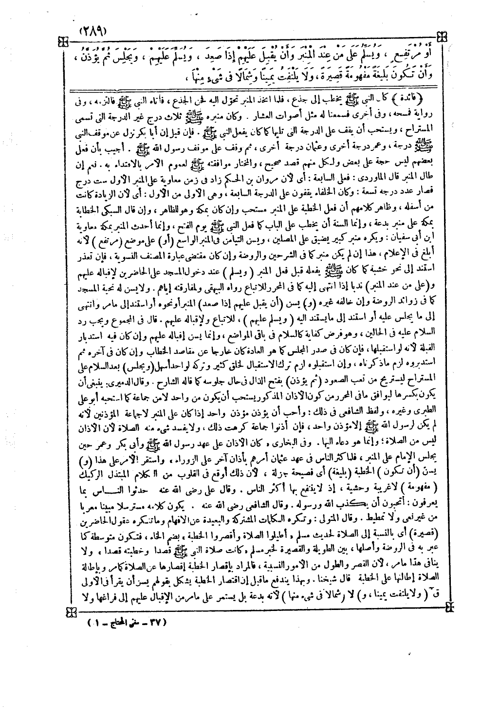 ( ويسلم ) عند دخول المسجد على الحاضرين لإقباله عليهم و ( على من عند المنبر ) ندبا إذا انتهى إليه كما في المحرر للاتباع رواه البيهقي ولمفارقته إياهم