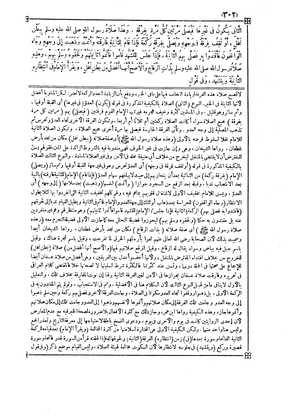 ( وهذه صلاة رسول الله صلى الله عليه وسلم ) أي صفة صلاته ( بذات الرقاع ) مكان من نجد بأرض غطفان رواها الشيخان أيضا وسميت بذلك لأن الصحابة رضي الله تعالى عنهم لفوا بأرجلهم الخرق لما تفرحت وقيل باسم شجرة هناك وقيل باسم جبل فيه بياض وسواد يقال له الرقاع وقيل لترقع صلاتهم فيها