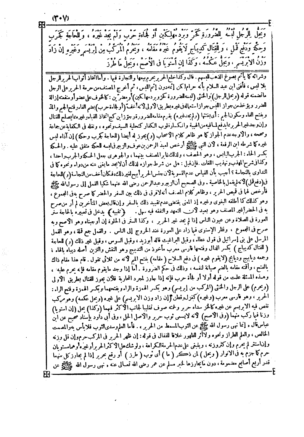 وفي الصحيح أن الزبير وعبد الرحمن رضي الله عنهما شكيا القمل إلى رسول الله صلى الله عليه وسلم فأرخص لهما في قميص الحرير