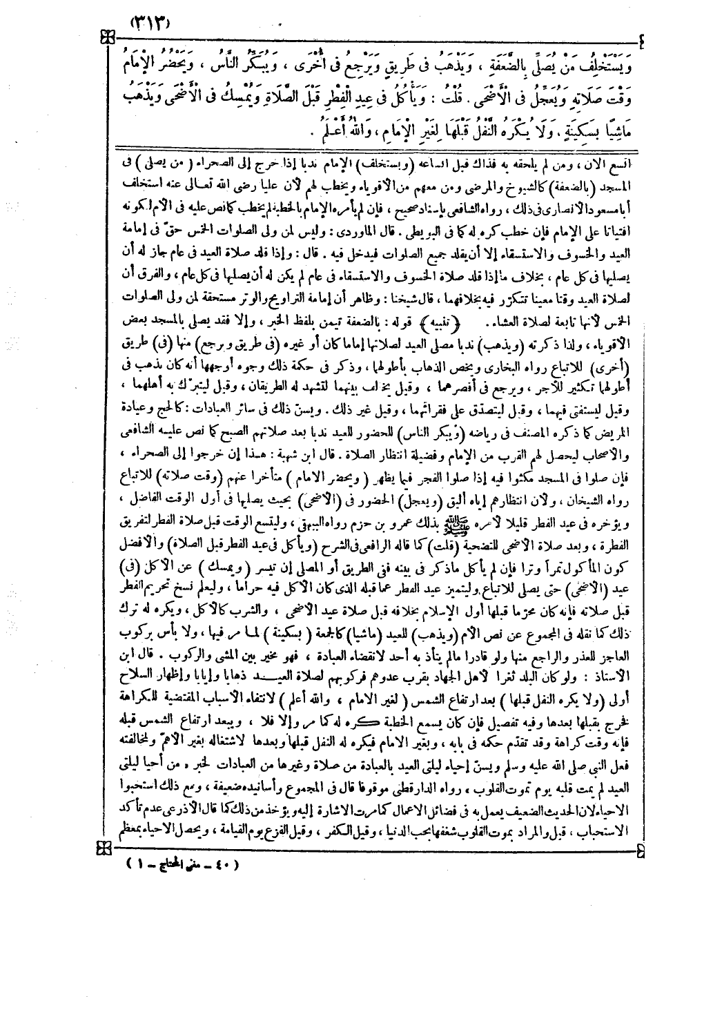( ويذهب ) للعيد ( ماشيا ) كالجمعة ( بسكينة ) لما مر فيها ولا بأس بركوب العاجز للعذر والراجع منها ولو قادرا ما لم يتأذ به أحد لانقضاء العبادة فهو مخير بين المشي والركوب
