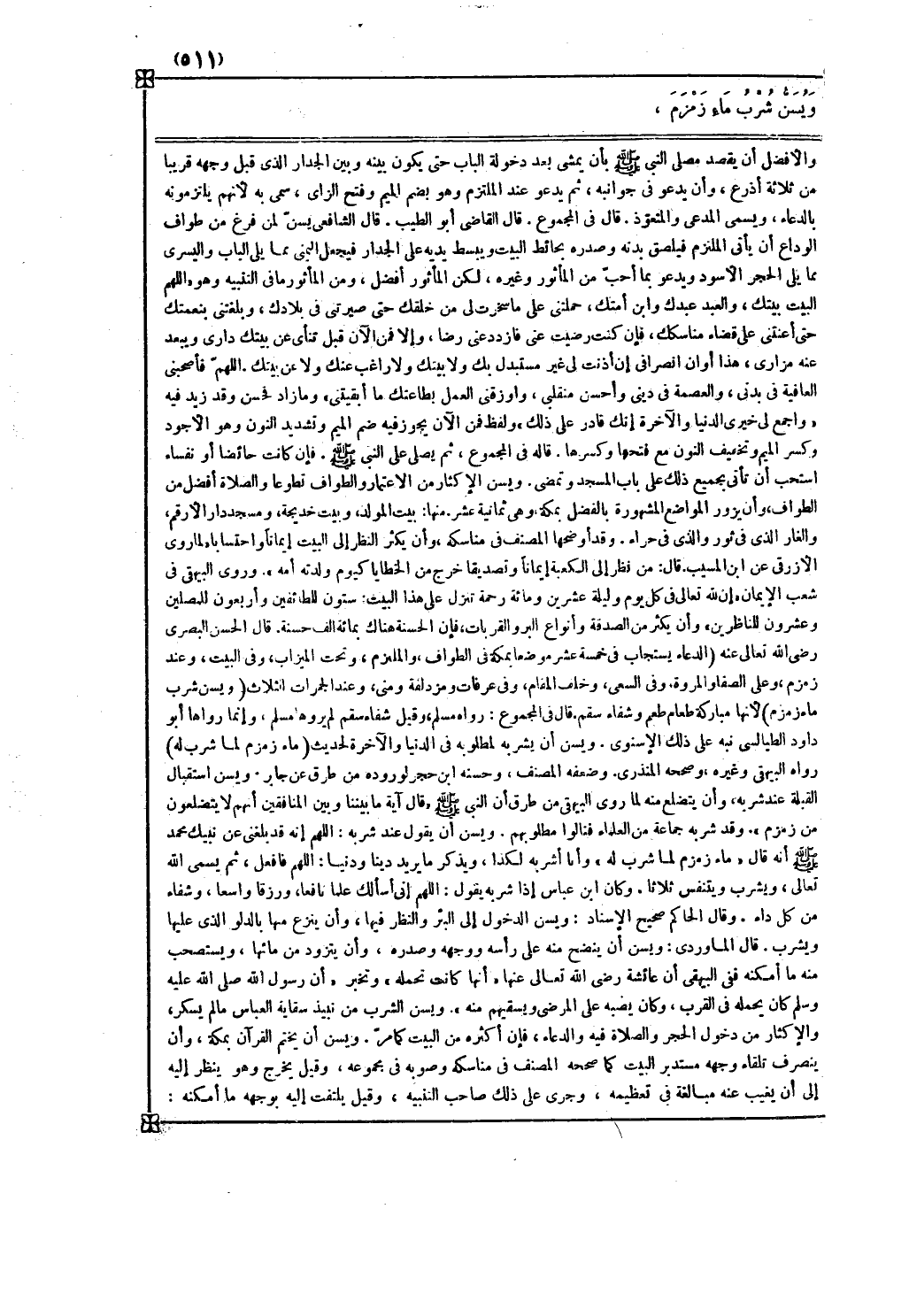 ( ويسن شرب ماء زمزم ) لأنها مباركة طعام طعم وشفاء سقم