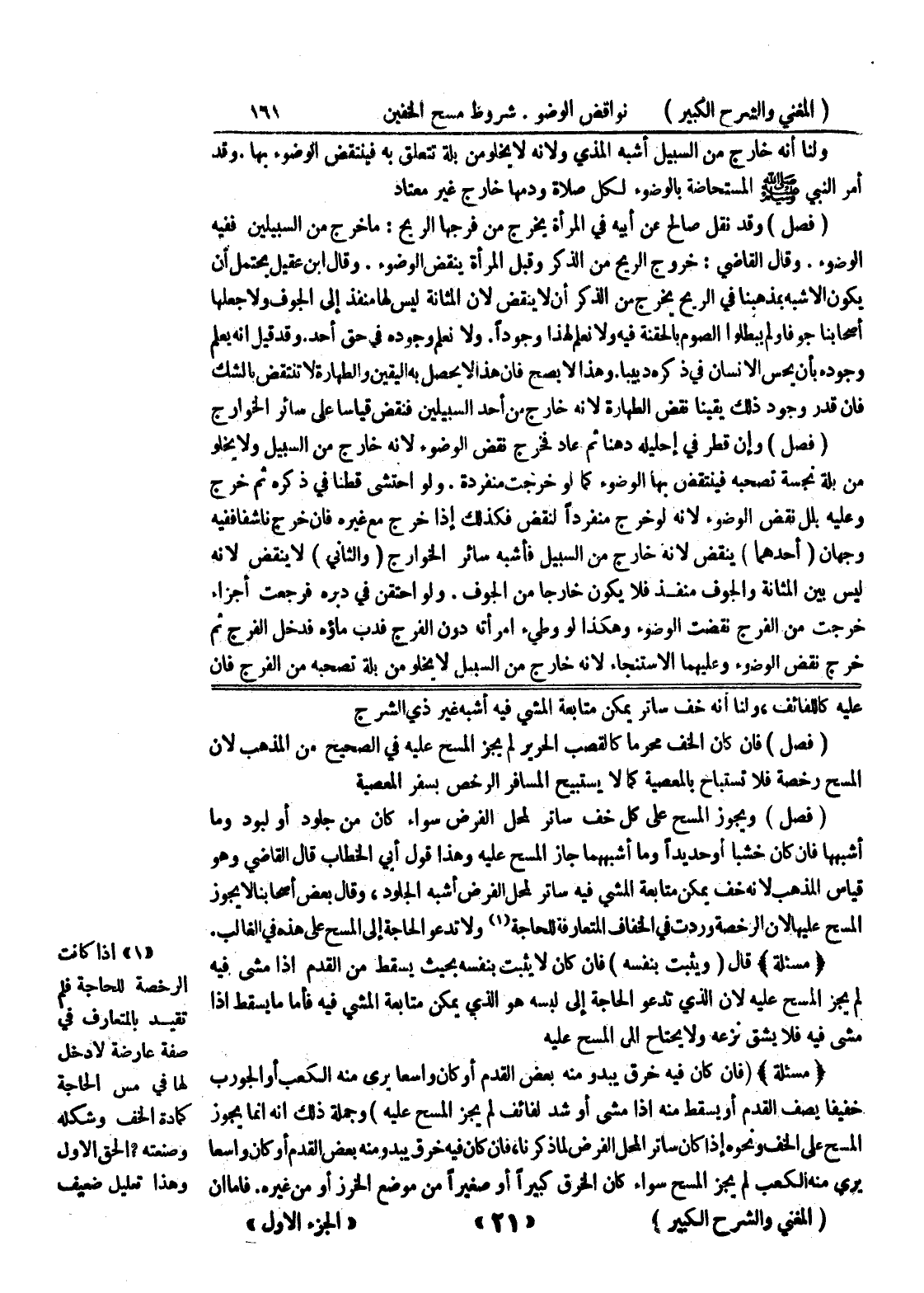 1) إذا كانت الرخصة للحاجة فلم تقيد بالمتعارف في صفة عارضة لادخل لها في مس الحاجة كمادة الخف وشكله وصنعته؟ الحق الاول وهذا تعليل ضعيف