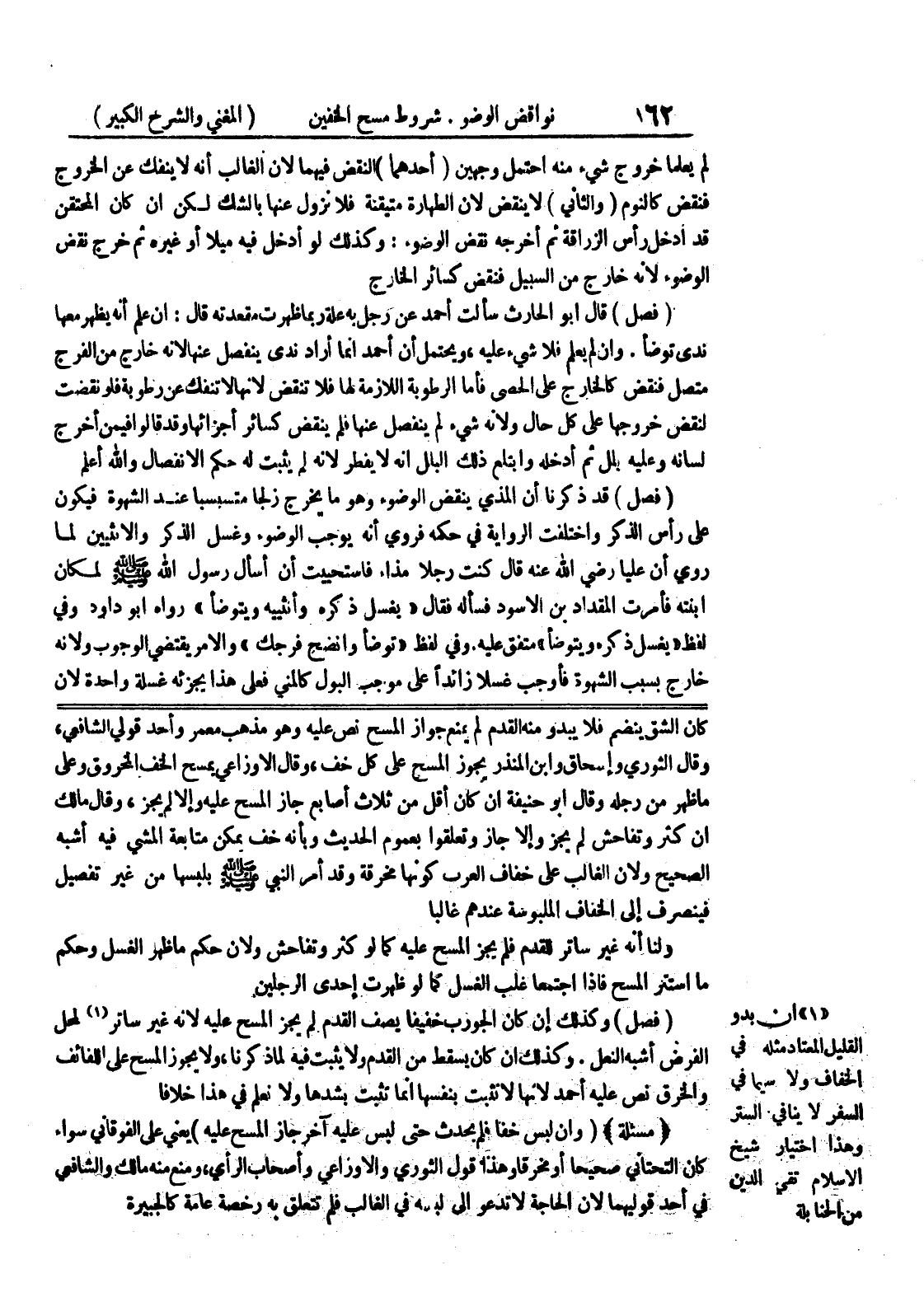 1) ان بدو القليل المعتاد في الخفاف ولا سيما في السفر وهذا اختيار شيخ الاسلام تقي الدين من الحنابلة