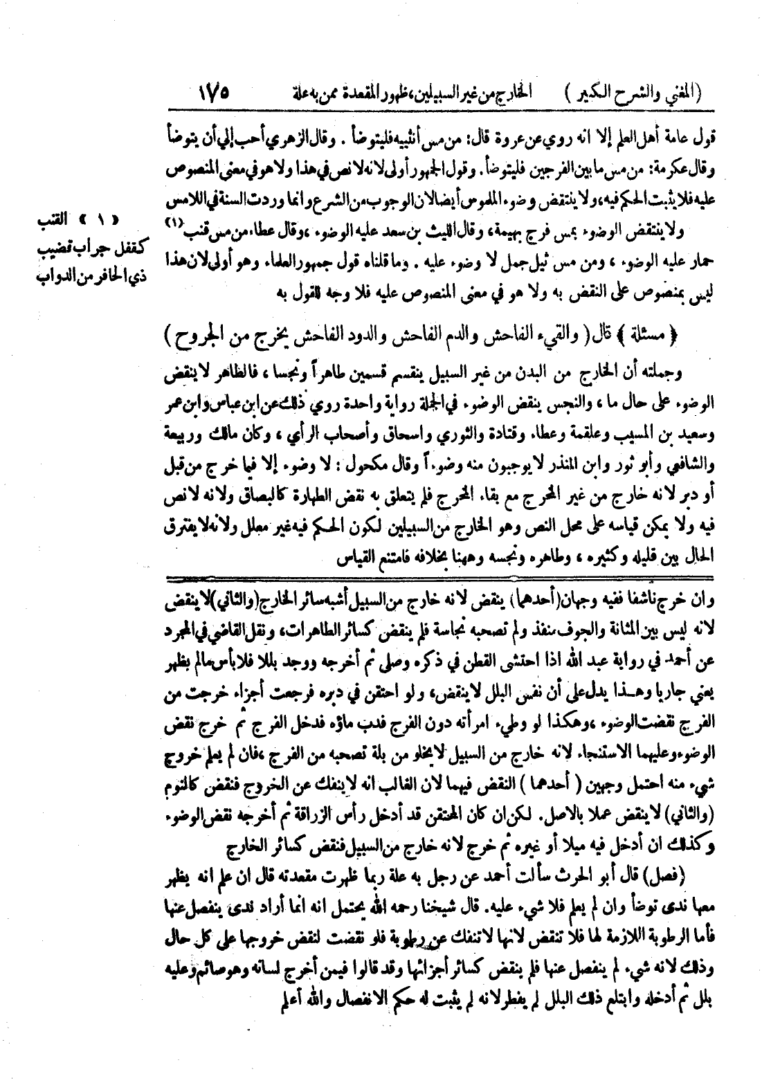 لكن إن كان المحتقن قد أدخل رأس الزراقة ثم أخرجه نقض الوضوء وكذلك إن أدخل فيه ميلا أو غيره ثم خرج لأنه خارج من السبيل فنقض كسائر الخارج (فصل) قال أبو الحرث سألت أحمد عن رجل به علة ربما ظهرت مقعدته قال إن علم أنه يظهر معها ندى توضأ وإن لم يعلم فلا شئ عليه.