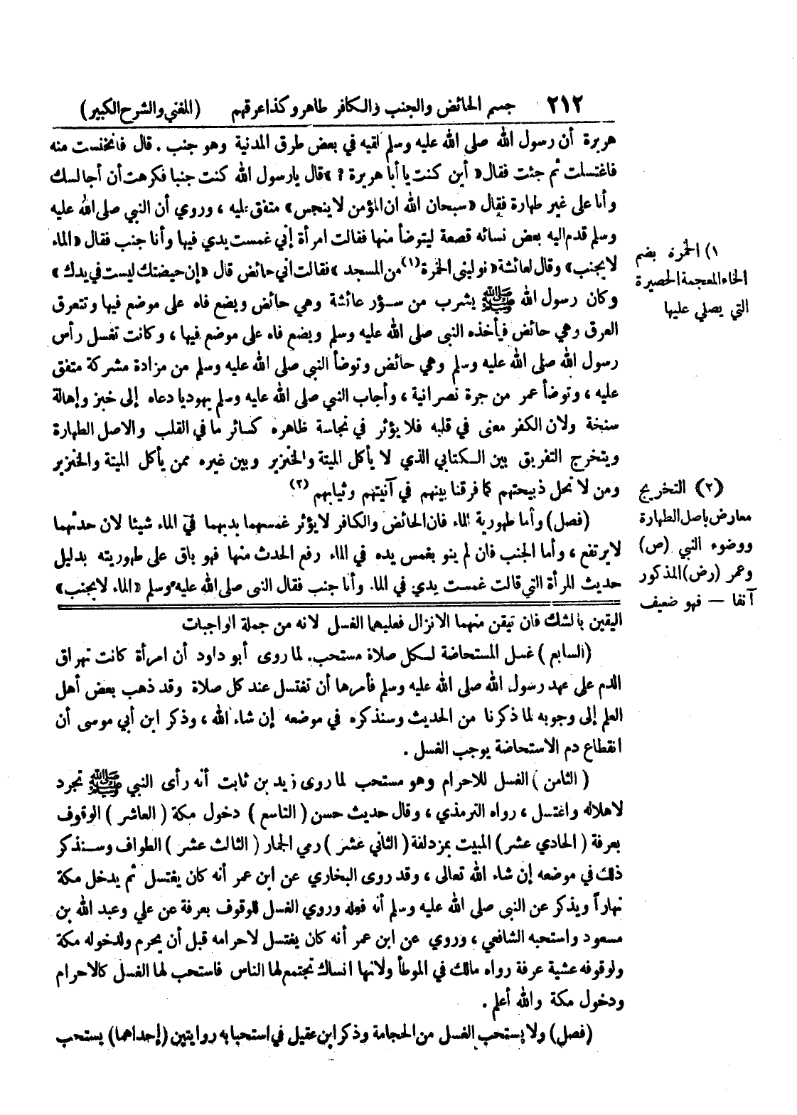 (الثامن) الغسل للإحرام وهو مستحب لما روى زيد بن ثابت أنه رأى النبي صلى الله عليه وسلم تجرد لإهلاله واغتسل، رواه الترمذي، وقال حديث حسن (التاسع) دخول مكة (العاشر) الوقوف بعرفة (الحادي عشر) المبيت بمزدلفة (الثاني عشر) رمي الجمار (الثالث عشر) الطواف وسنذكر ذلك في موضعه إن شاء الله تعالى، وقد روى البخاري عن ابن عمر أنه كان يغتسل ثم يدخل مكة نهارا ويذكر عن النبي صلى الله عليه وسلم أنه فعله وروي الغسل للوقوف بعرفة عن علي وعبد الله بن مسعود واستحبه الشافعي، وروي عن ابن عمر أنه كان يغتسل لإحرامه قبل أن يحرم ولدخوله مكة ولوقوفه عشية عرفة رواه مالك في الموطأ ولانها انساك تجتمع لها الناس فاستحب لها الغسل كالإحرام ودخول مكة والله أعلم.