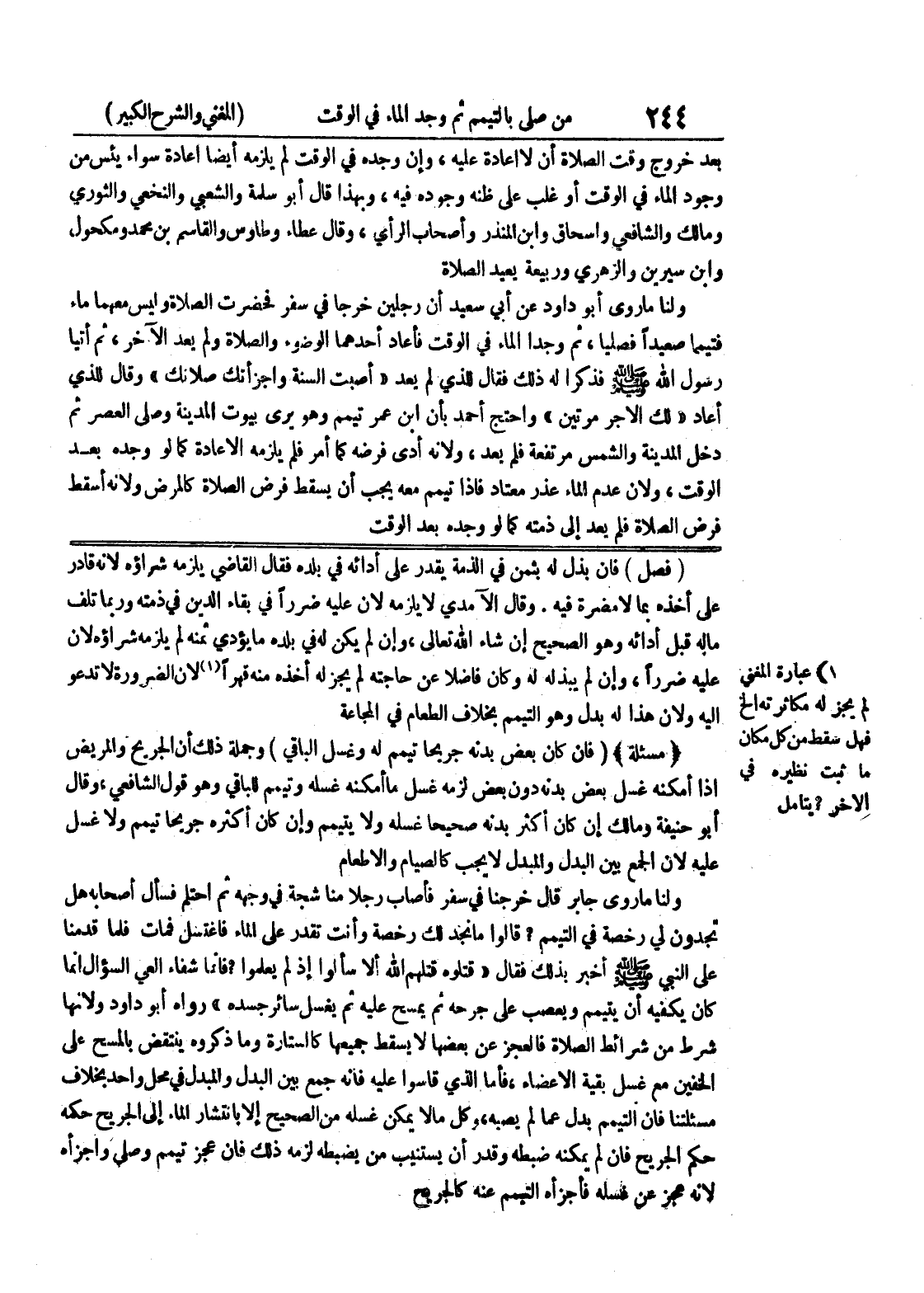(فصل) فإن بذل له بثمن في الذمة يقدر على ادائه في بلده فقال القاضي يلزمه شراؤه لأنه قادر على أخذه بما لا مضرة فيه.