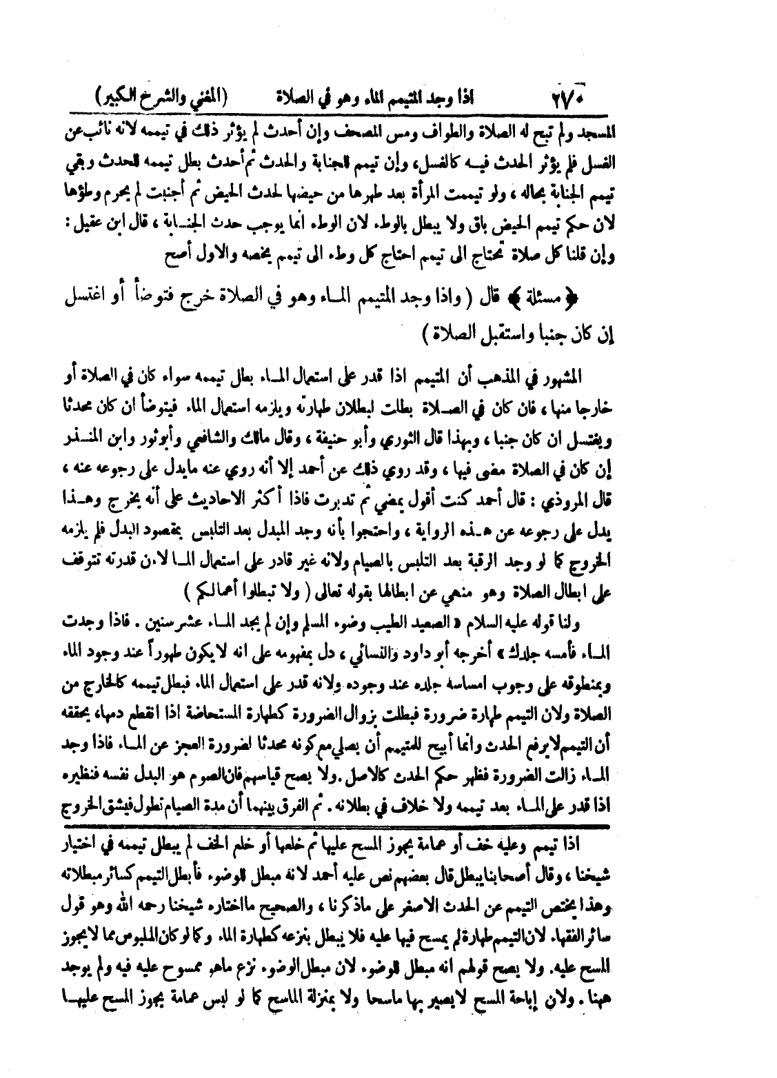إذا تيمم وعليه خف أو عمامة يجوز المسح عليها ثم خلعها أو خلع الخف لم يبطل تيممه في اختيار شيخنا، وقال أصحابنا يبطل قال بعضهم نص عليه أحمد لأنه مبطل للوضوء فأبطل التيمم كسائر مبطلاته وهذا يختص التيمم عن الحدث الأصغر على ما ذكرنا، والصحيح ما اختاره شيخنا رحمه الله وهو قول سائر الفقهاء لأن التيمم طهارة لم يمسح فيها عليه فلا يبطل بنزعه كطهارة الماء وكما لو كان الملبوس مما لا يجوز المسح عليه.