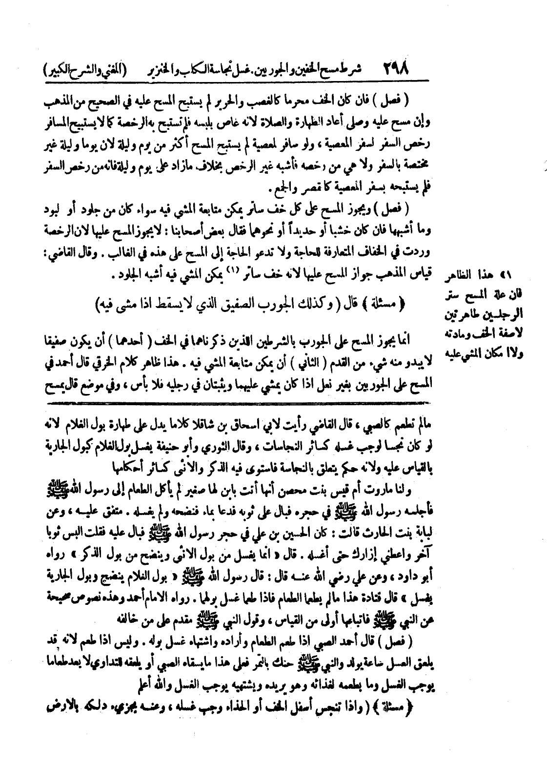 وليس إذا طعم لأنه قد يلعق العسل ساعة يولد والنبي صلى الله عليه وسلم حنك بالتمر فعلى هذا ما يسقاه الصبي أو يلعقه للتداوي لا يعد طعاماً يوجب الغسل وما يطعمه لغذائه وهو يريده ويشتهيه يوجب الغسل والله أعلم (مسألة) (وإذا تنجس أسفل الخف أو الحذاء وجب غسله، وعنه يجزئ دلكه بالأرض