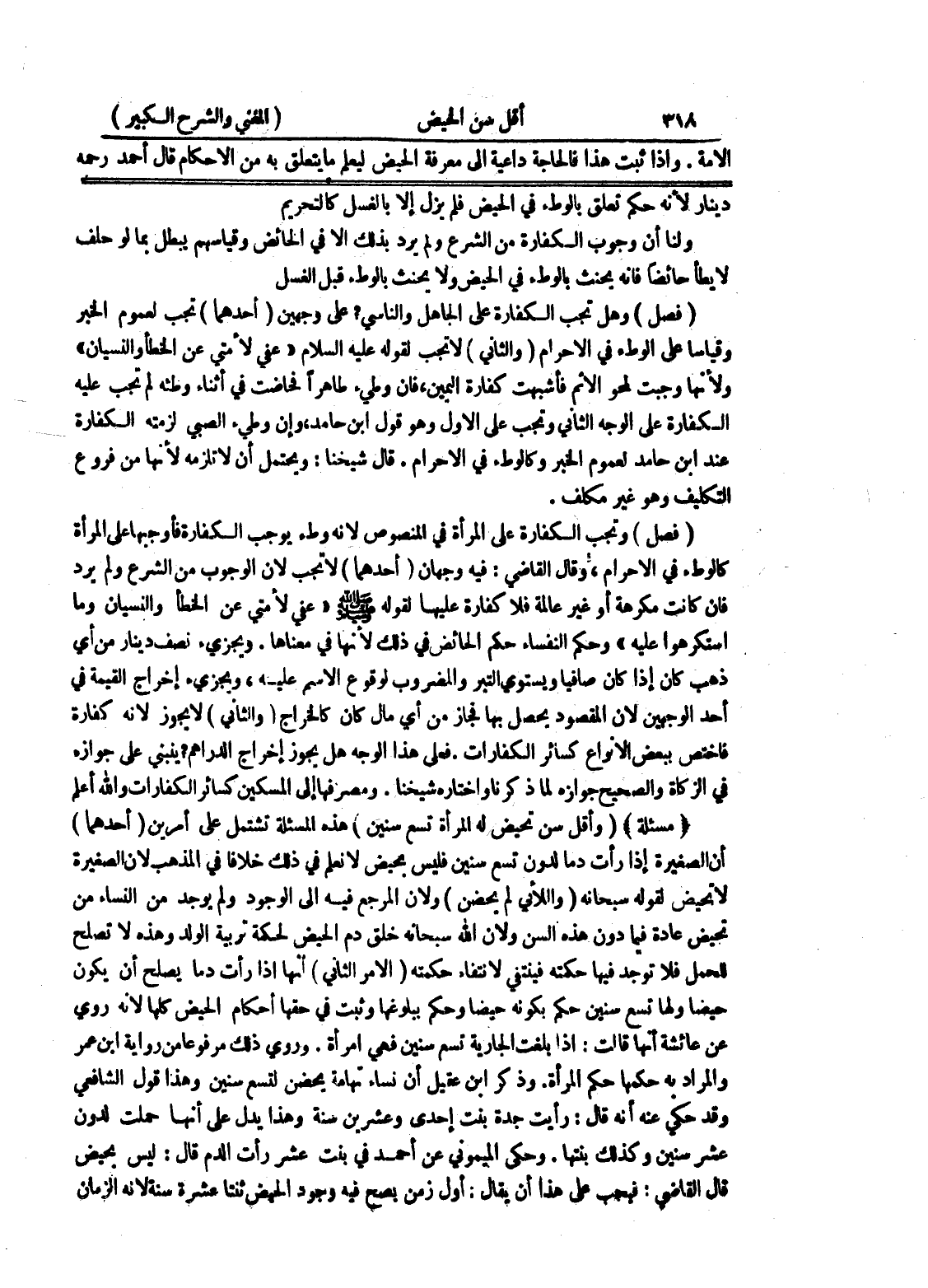 ولأنها وجبت لمحو الإثم فأشبهت كفارة اليمين، فان وطئ طاهراً فحاضت في أثناء وطئه لم تجب عليه الكفارة على الوجه الثاني وتجب على الأول وهو قول ابن حامد، وإن وطئ الصبي لزمته الكفارة عند ابن حامد لعموم الخبر وكالوطئ في الإحرام.