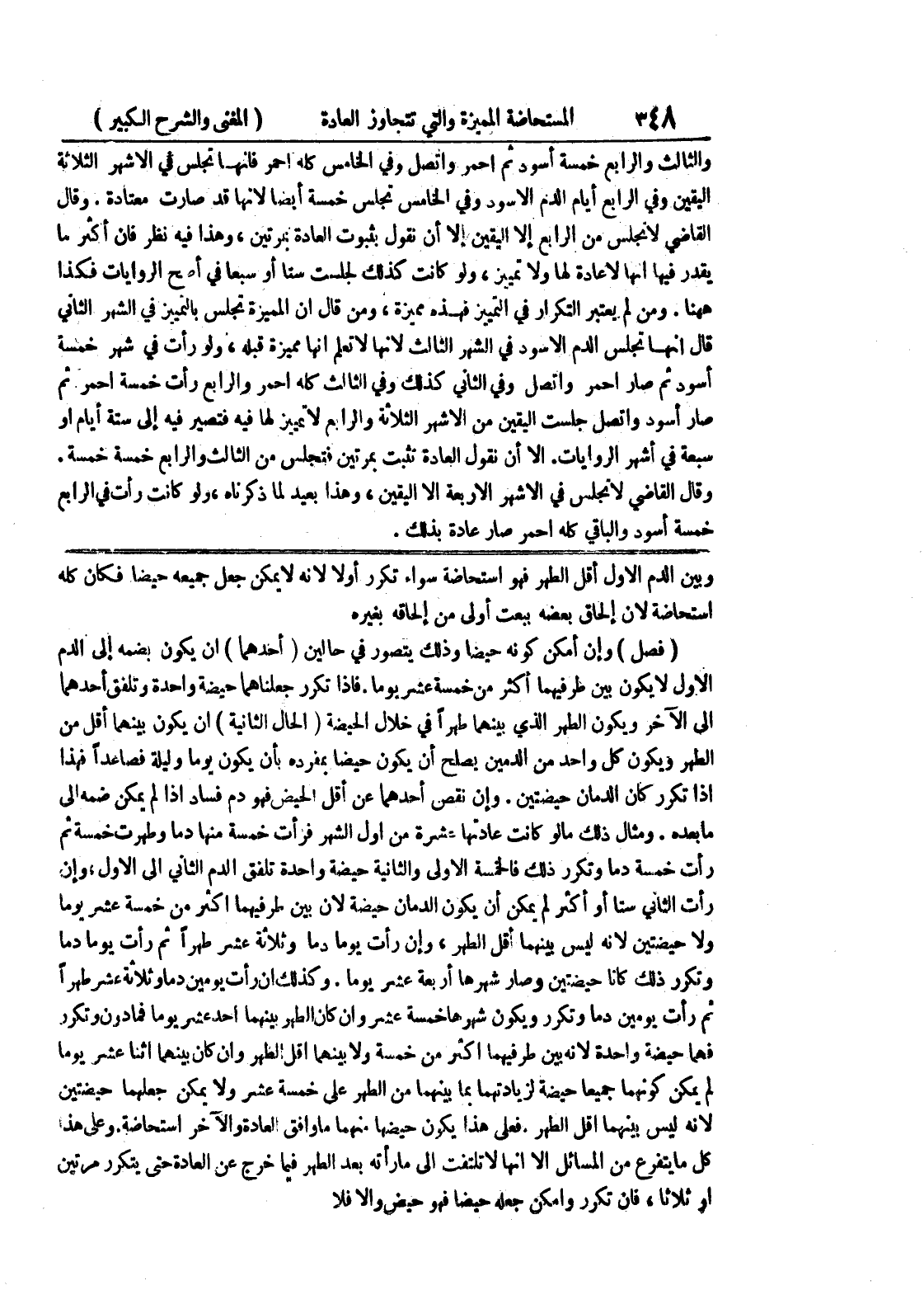 وبين الدم الأول أقل الطهر فهو إستحاضة سواء تكرر أولاً لأنه لا يمكن جعل جميعه حيضاً فكان كله إستحاضة لأن إلحاق بعضه ببعت أولى من الحاقه بغيره (فصل) وإن أمكن كونه حيضاً وذلك يتصور في حالين (أحدهما) أن يكون بضمه إلى الدم الاول لا يكون بين طرفيهما أكثر من خمسة عشر يوماً.