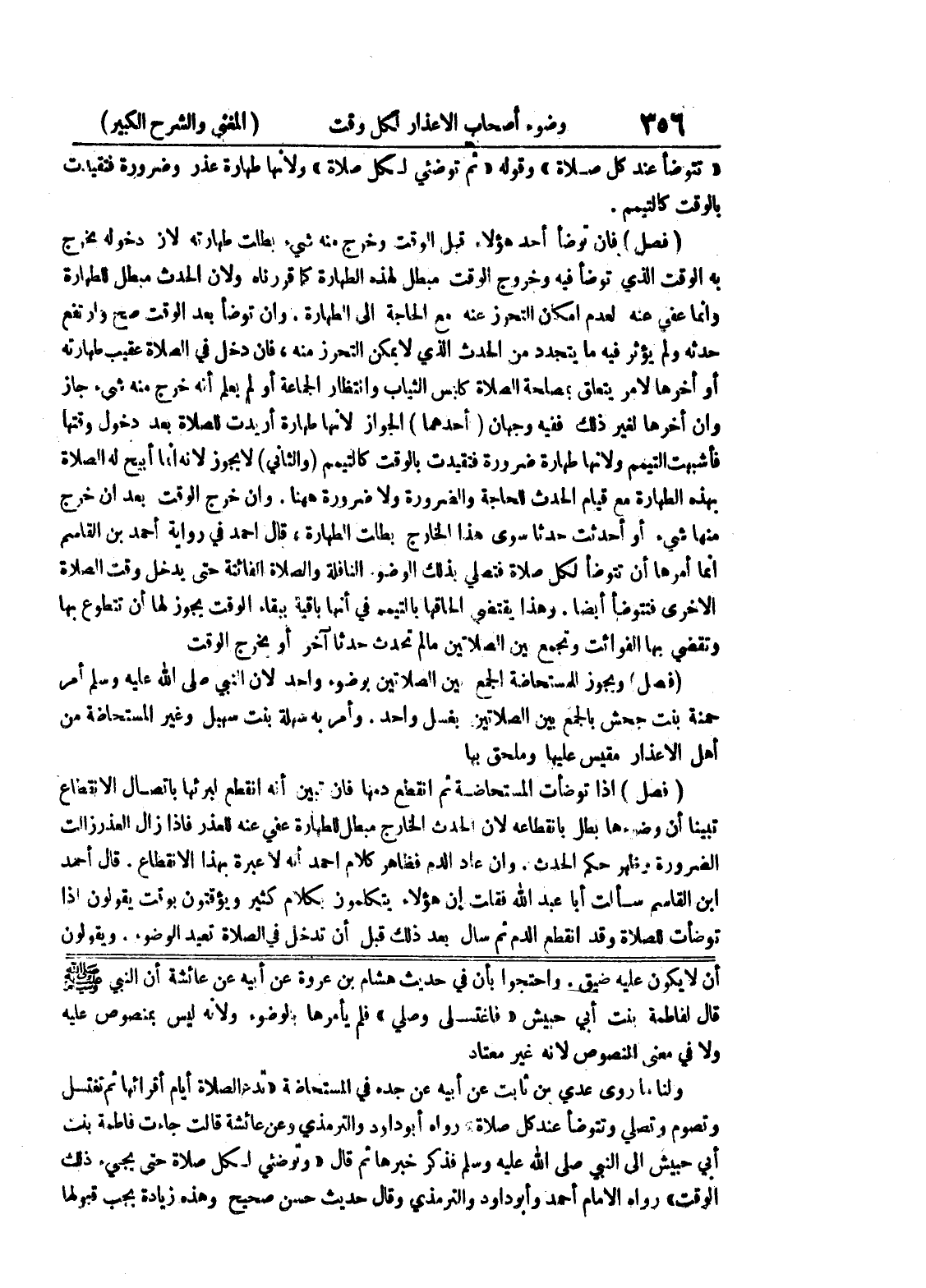 أبي حبيش إلى النبي صلى الله عليه وسلم فذكر خبرها ثم قال " وتوضئي لكل صلاة حتى يجئ ذلك الوقت " رواه الإمام أحمد وأبو داود والترمذي وقال حديث حسن صحيح وهذه زيادة يجب قبولها
