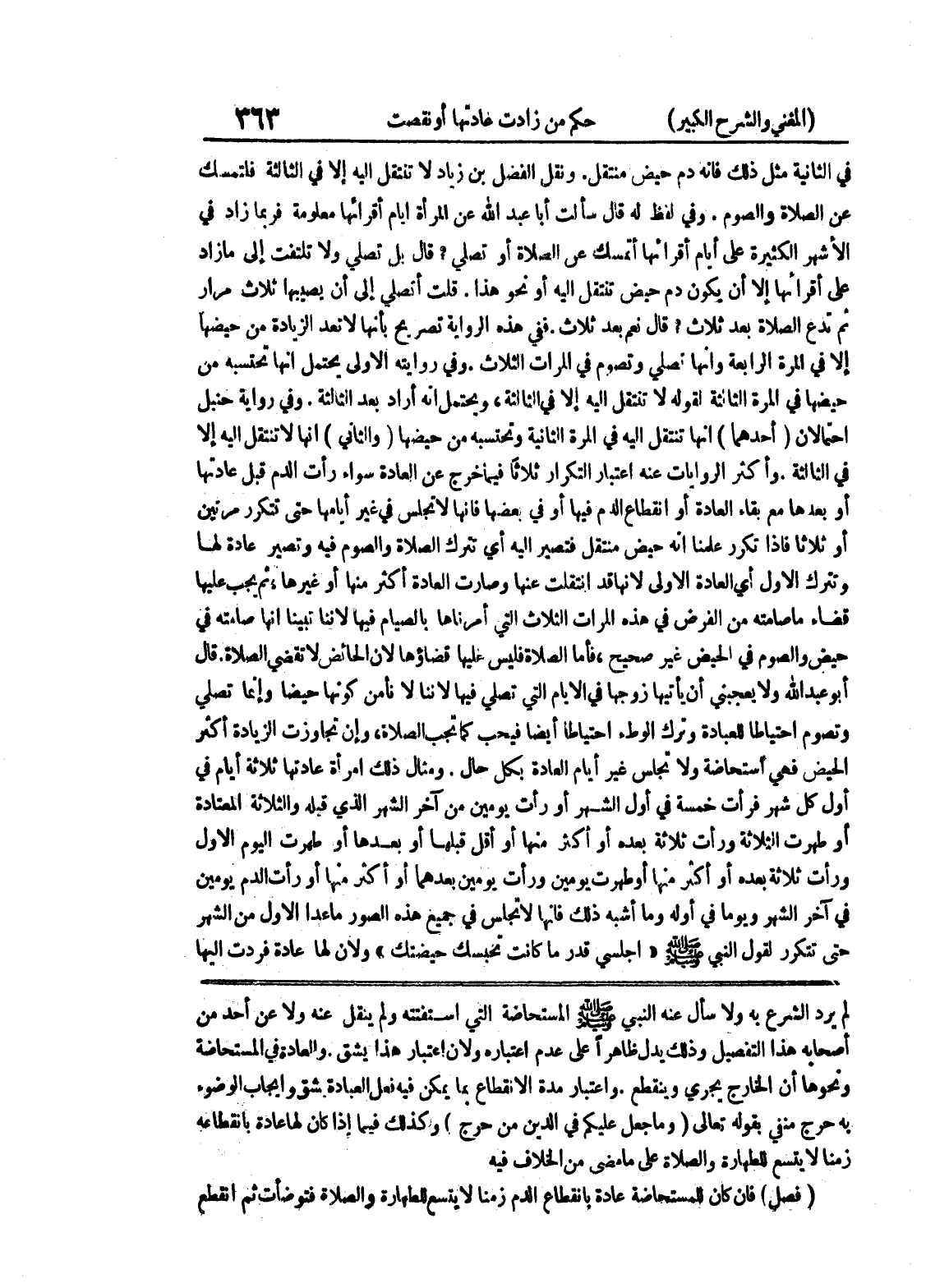 وإعتبار مدة الإنقطاع بما يمكن فيه فعل العبادة بشق وإيجاب الوضوء به حرج منفي بقوله تعالى (وما جعل عليكم في الدين من حرج) وكذلك فيما إذا كان لها عادة بإنقطاعه زمناً لا يتسع للطهارة والصلاة على ما مضى من الخلاف فيه (فصل) فإن كان للمستحاضة عادة بإنقطاع الدم زمناً لا يتسع للطهارة والصلاة فتوضأت ثم إنقطع