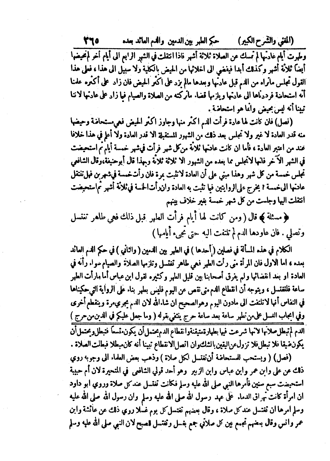 (فصل) (ويستحب للمستحاضة أن تغتسل لكل صلاة) وذهب بعض العلماء إلى وجوبه روى ذلك عن علي وابن عمر وابن عباس وابن الزبير وهو أحد قولي الشافعي في المتحيرة لأن أم حبيبة إستحيضت سبع سنين فأمرها النبي صلى الله عليه وسلم فكانت تغتسل عند كل صلاة وروى أبو داود أن امرأة كانت تهراق الدماء على عهد رسول الله صلى الله عليه وسلم وإن رسول الله صلى الله عليه وسلم أمرها أن تغتسل عند كل صلاة، وقال بعضهم تغتسل كل يوم غسلاً روى ذلك عن عائشة وابن عمر وأنس وقال بعضهم تجمع بين كل صلاتي جمع بغسل وتغتسل للصبح لأن النبي صلى الله عليه وسلم