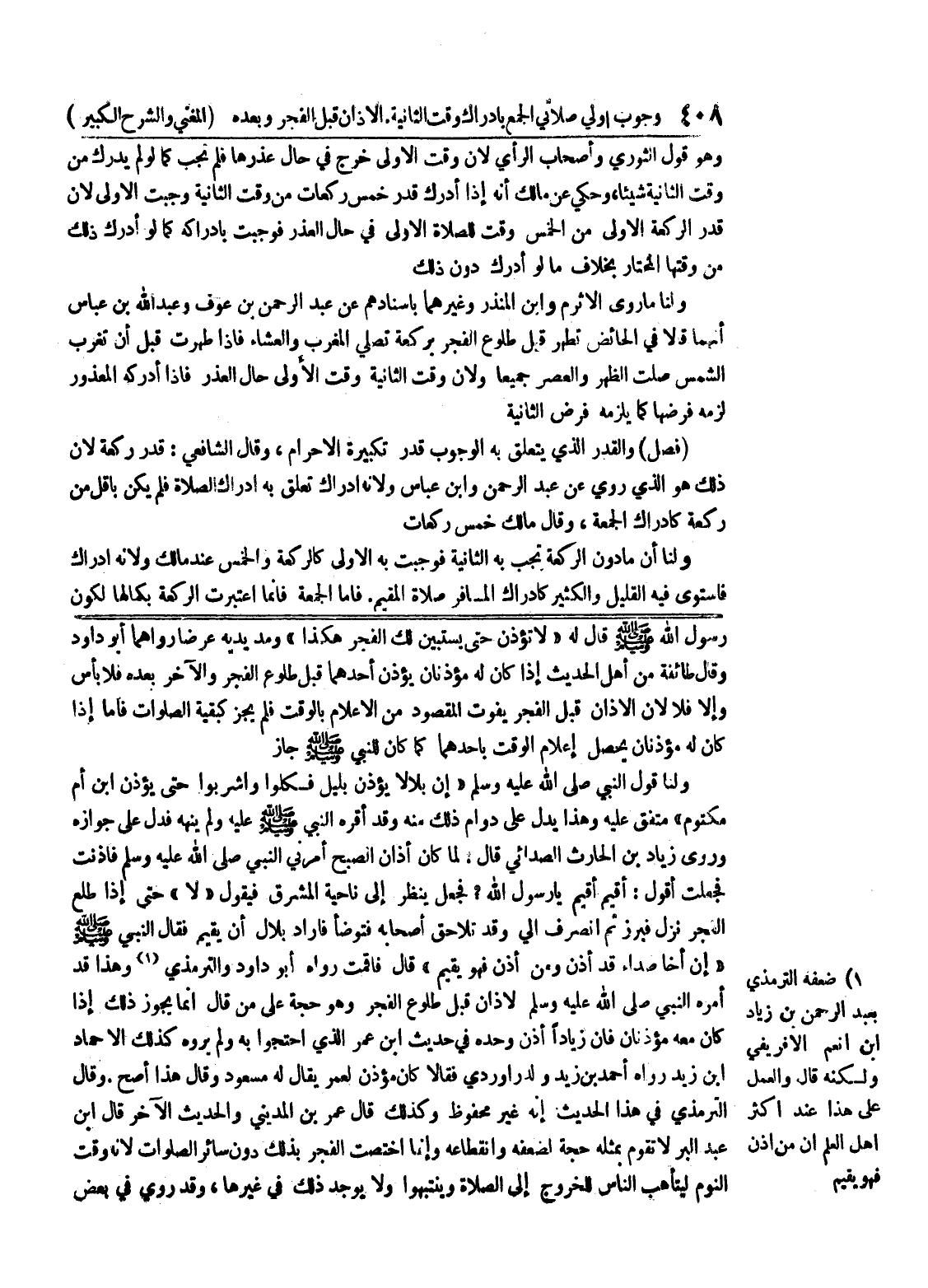 وقال طائفة من أهل الحديث إذا كان له مؤذنان يؤذن أحدهما قبل طلوع الفجر والآخر بعده فلا بأس وإلا فلا لأن الأذان قبل الفجر يفوت المقصود من الإعلام بالوقت فلم يجز كبقية الصلوات فأما إذا كان له مؤذنان يحصل إعلام الوقت بأحدهما كما كان للنبي صلى الله عليه وسلم جاز ولنا قول النبي صلى الله عليه وسلم " إن بلالا يؤذن بليل فكلوا واشربوا حتى يؤذن ابن أم مكتوم " متفق عليه وهذا يدل على دوام ذلك منه وقد أقره النبي صلى الله عليه وسلم عليه ولم ينهه فدل على جوازه وروى زياد بن الحارث الصدائي قال.