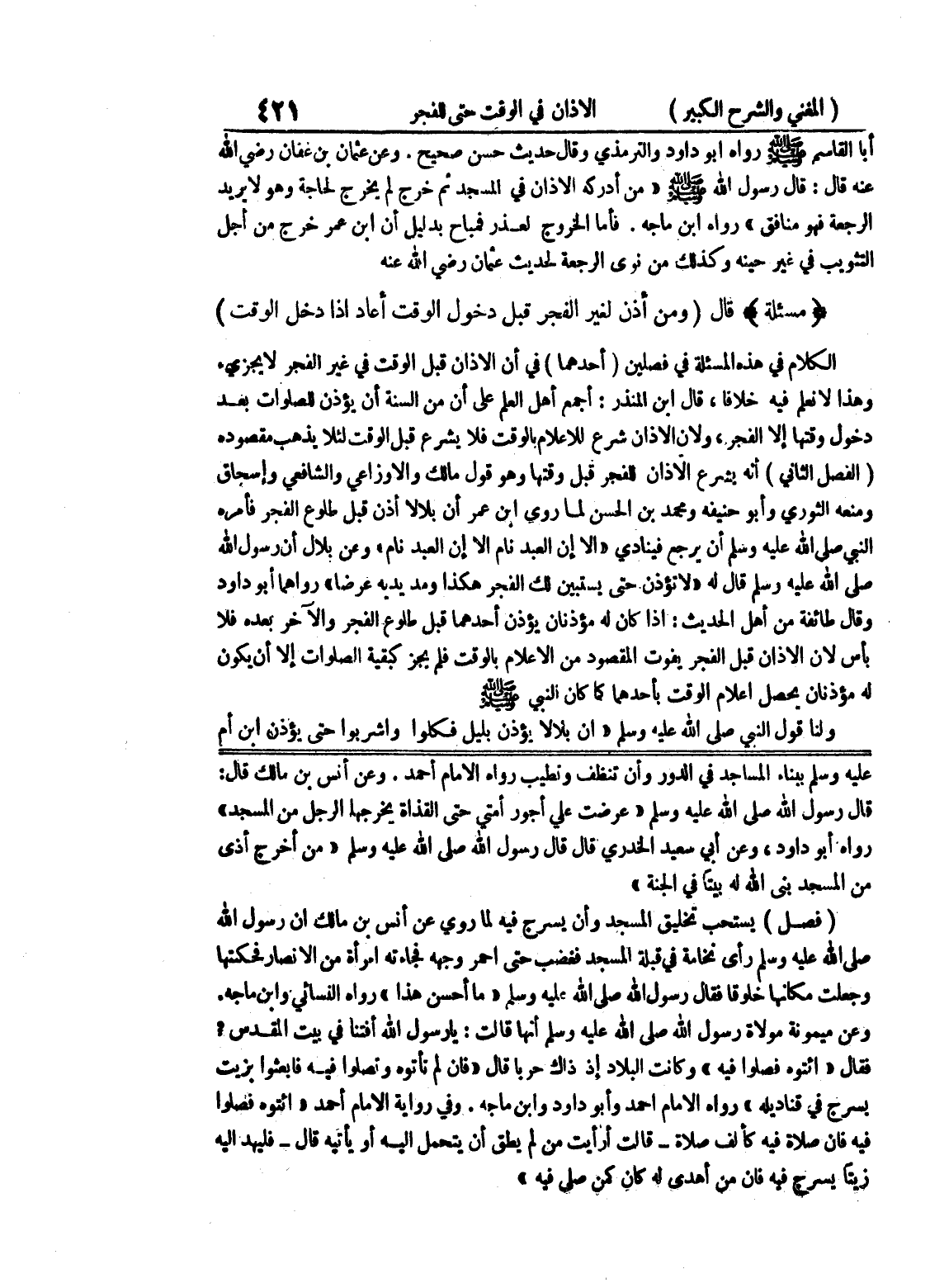 وعن أنس بن مالك قال: قال رسول الله صلى الله عليه وسلم " عرضت علي أجور أمتي حتى القذاة يخرجها الرجل من المسجد " رواه أبو داود، وعن أبي سعيد الخدري قال قال رسول الله صلى الله عليه وسلم " من أخرج أذى من المسجد بنى الله له بيتا في الجنة " (فصل) يستحب تخليق المسجد وأن يسرج فيه لما روي عن أنس بن مالك أن رسول الله صلى الله عليه وسلم رأى نخامة في قبلة المسجد فغضب حتى أحمر وجهه فجاءته امرأة من الإنصار فحكمتها وجعلت مكانها خلوقاً فقال رسول الله صلى الله عليه وسلم " ما أحسن هذا " رواه النسائي وابن ماجه.