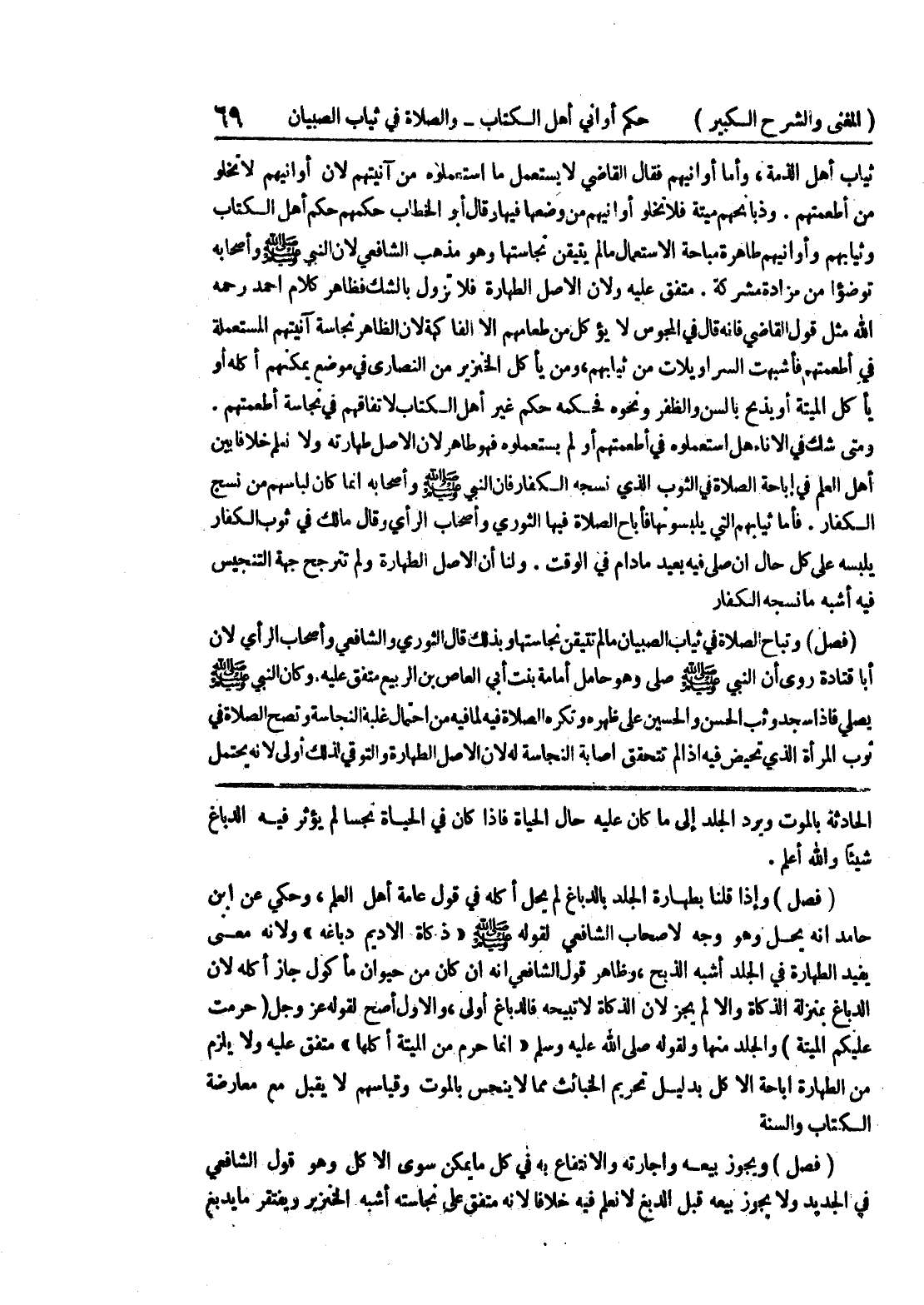الكتاب والسنة (فصل) ويجوز بيعه وإجارته والانتفاع به في كل ما يمكن سوى الآكل وهو قول الشافعي في الجديد ولا يجوز بيعه قبل الدبغ لا نعلم فيه خلافا لأنه متفق على نجاسته أشبه الخنزير ويفتقر ما يدبغ