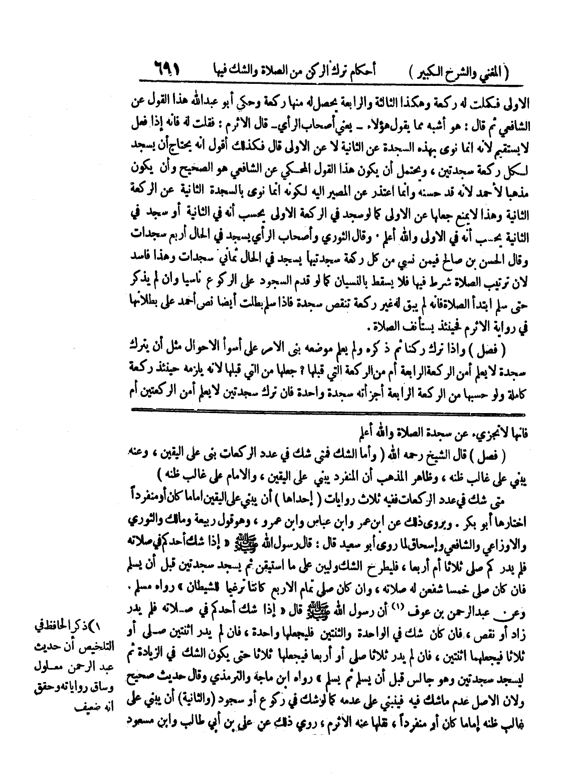 1) ذكر الحافظ في التلخيص أن حديث عبد الرحمن معلول وساق رواياته وحقق انه ضعيف