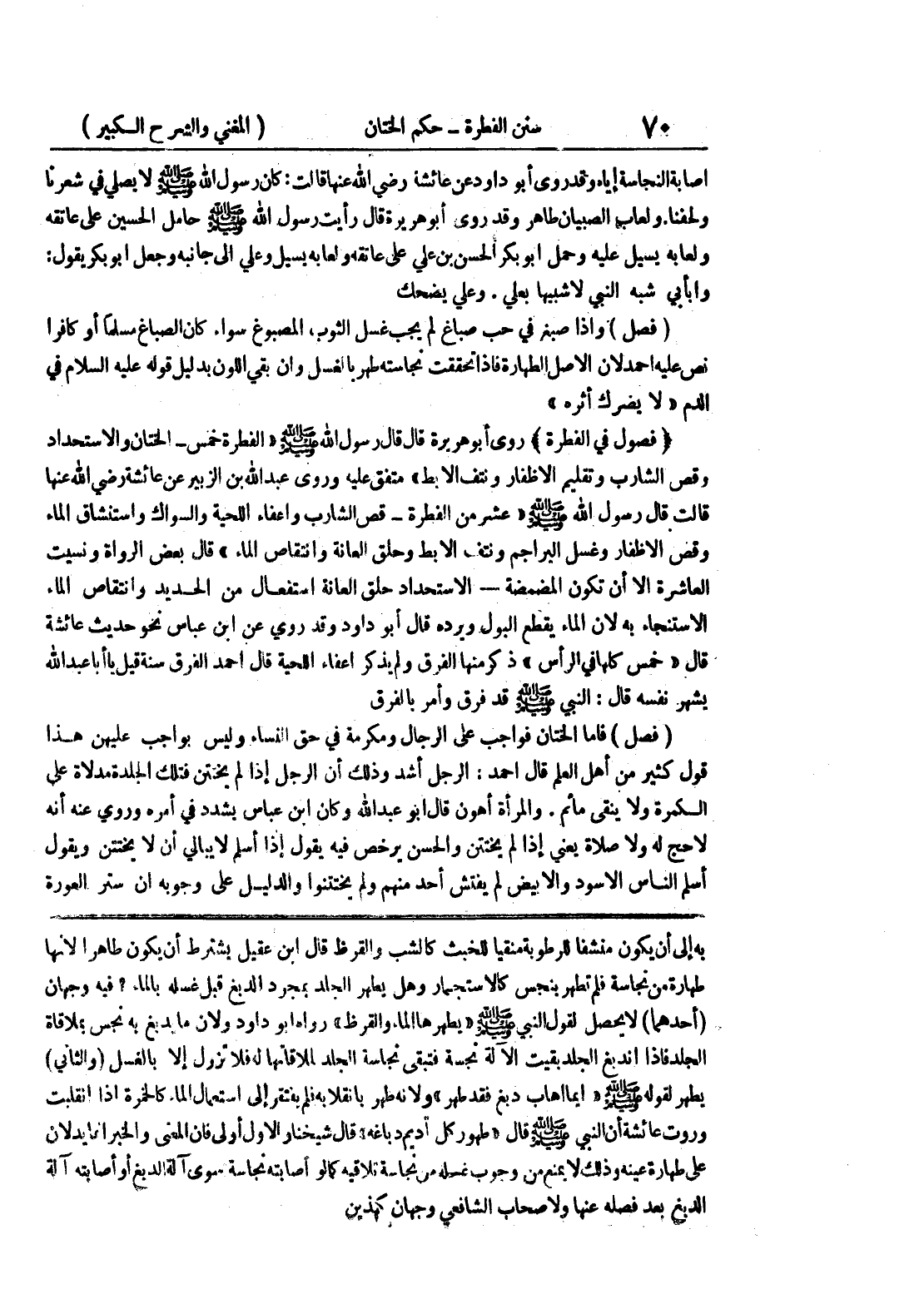 به الى أن يكون منشفا للرطوبة منقيا للخبث كالشب والقرظ قال ابن عقيل يشترط أن يكون طاهرا لأنها طهارة من نجاسة فلم تطهر بنجس كالاستجمار وهل يطهر الجلد بمجرد الدبغ قبل غسله بالماء؟ فيه وجهان (أحدهما) لا يحصل لقول النبي صلى الله عليه والسلم " يطهرها الماء والقرظ " رواه أبو داود ولأن ما يدبغ به نجس بملاقاة الجلد فإذا اندبغ الجلد بقيت الآلة نجسة فتبقى نجاسة الجلد لملاقاتها له فلا تزول إلا بالغسل (والثاني) يطهر لقوله صلى الله عليه وسلم " أيما إهاب دبغ فقد طهر " ولأنه طهر بانقلابه فلم يفتقر إلى استعمال الماء كالخمرة إذا انقلبت وروت عائشة أن النبي صلى الله عليه وسلم قال " طهور كل أديم دباغه قال شيخنا والأول أولى فإن المعنى والخبر إنما يدلان على طهارة عينه وذلك لا يمنع من وجوب غسله من نجاسة تلاقيه كما لو أصابته نجاسة سوى آلة الدبغ أو أصابته آلة الدبغ بعد فصله عنها ولأصحاب الشافعي وجهان كهذين