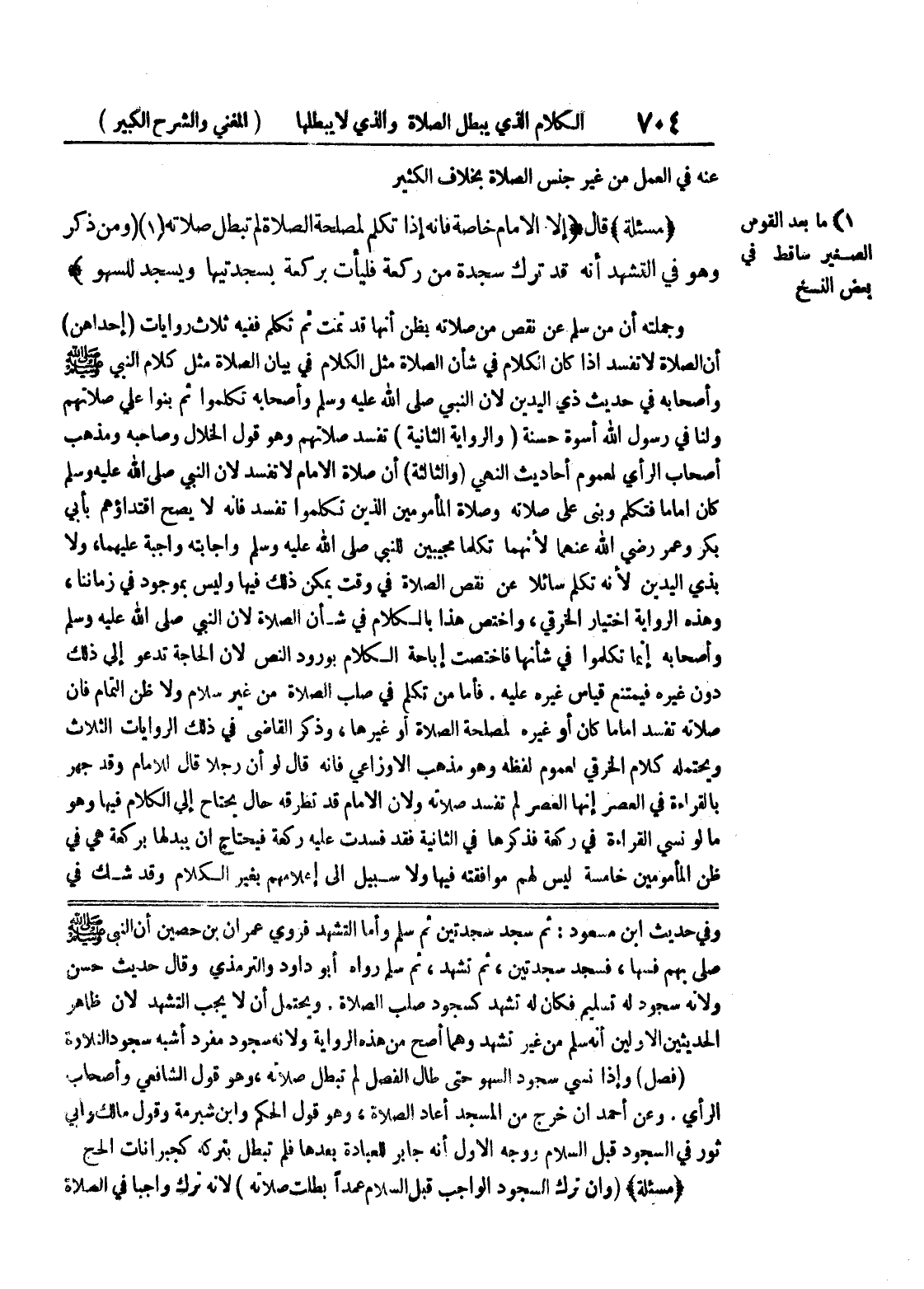 ثور في السجود قبل السلام ووجه الأول أنه جابر للعبادة بعدها فلم تبطل بتركه كجبرانات الحج (مسألة) (وإن ترك السجود الواجب قبل السلام عمدا بطلت صلاته) لأنه ترك واجبا في الصلاة