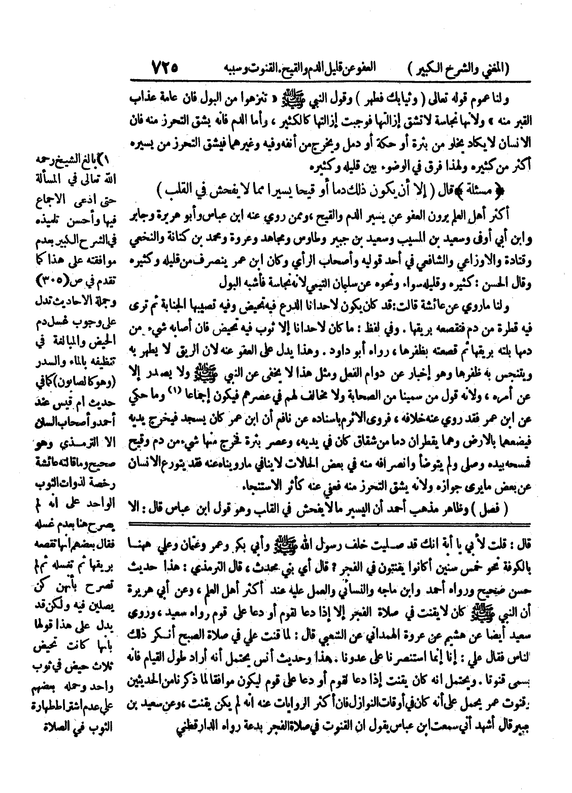 ويحتمل أنه كان يقنت إذا دعا لقوم أو دعا على قوم ليكون موافقاً لما ذكرنا من الحديثين قنوت عمر يحمل على أنه كان في أوقات النوازل فإن أكثر الروايات عنه أنه لم يكن يقنت، وعن سعيد بن جبير قال أشهد أني سمعت ابن عباس يقول أن القنوت في صلاة الفجر بدعة رواه الدارقطني