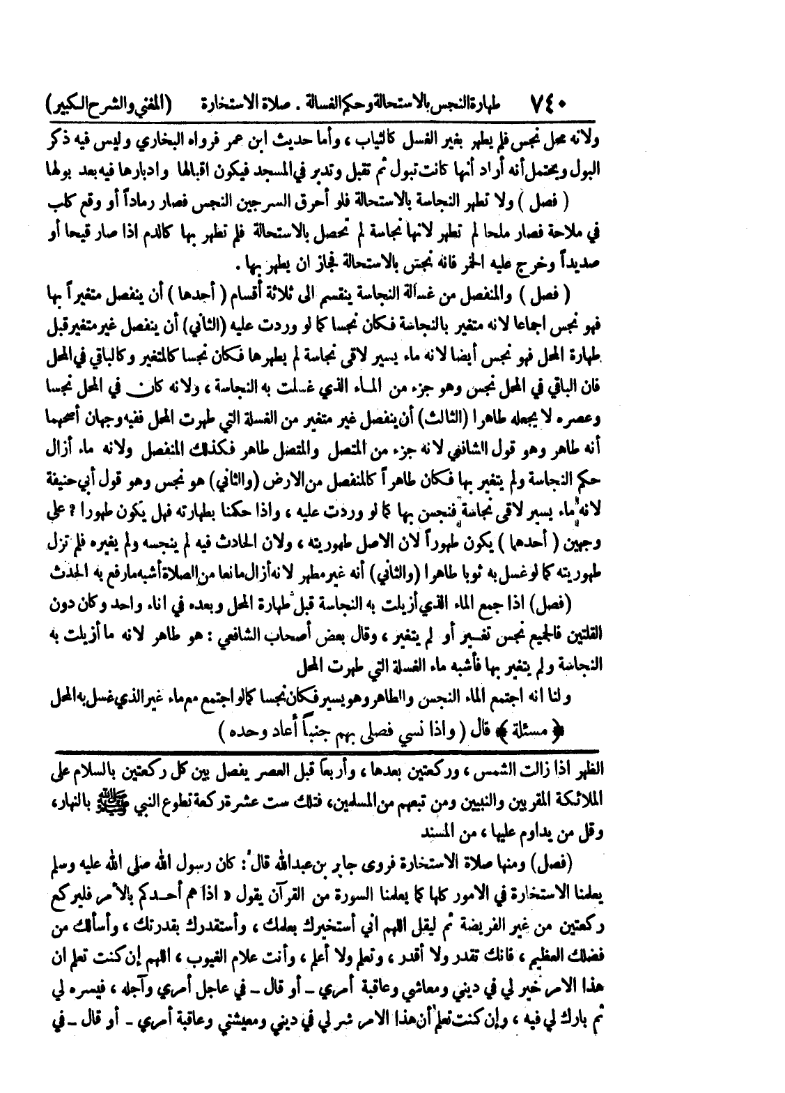 الظهر إذا زالت الشمس، وركعتين بعدها، وأربعا قبل العصر يفصل بين كل ركعتين بالسلام على الملائكة المقربين والنبيين ومن تبعهم من المسلمين، فتلك ست عشرة ركعة تطوع النبي صلى الله عليه وسلم بالنهار، وقل من يداوم عليها، من المسند (فصل) ومنها صلاة الاستخارة فروى جابر بن عبد الله قال: كان رسول الله صلى الله عليه وسلم يعلمنا الاستخارة في الأمور كلها كما يعلمنا السورة من القرآن يقول " إذا هم أحدكم بالأمر فيلركع ركعتين من غير الفريضة ثم ليقل اللهم إني أستخيرك بعلمك، وأستقدرك بقدرتك، وأسألك من فضلك العظيم، فإنك تقدر ولا أقدر، وتعلم ولا أعلم، وأنت علام الغيوب، اللهم إن كنت تعلم أن هذا الأمر خير لي في ديني ومعاشي وعاقبة أمري - أو قال - في عاجل أمري وآجله، فيسره لي ثم بارك لي فيه، وإن كنت تعلم أن هذا الامر شر لي في ديني ومعيشتي وعاقبة أمري - أو قال - في