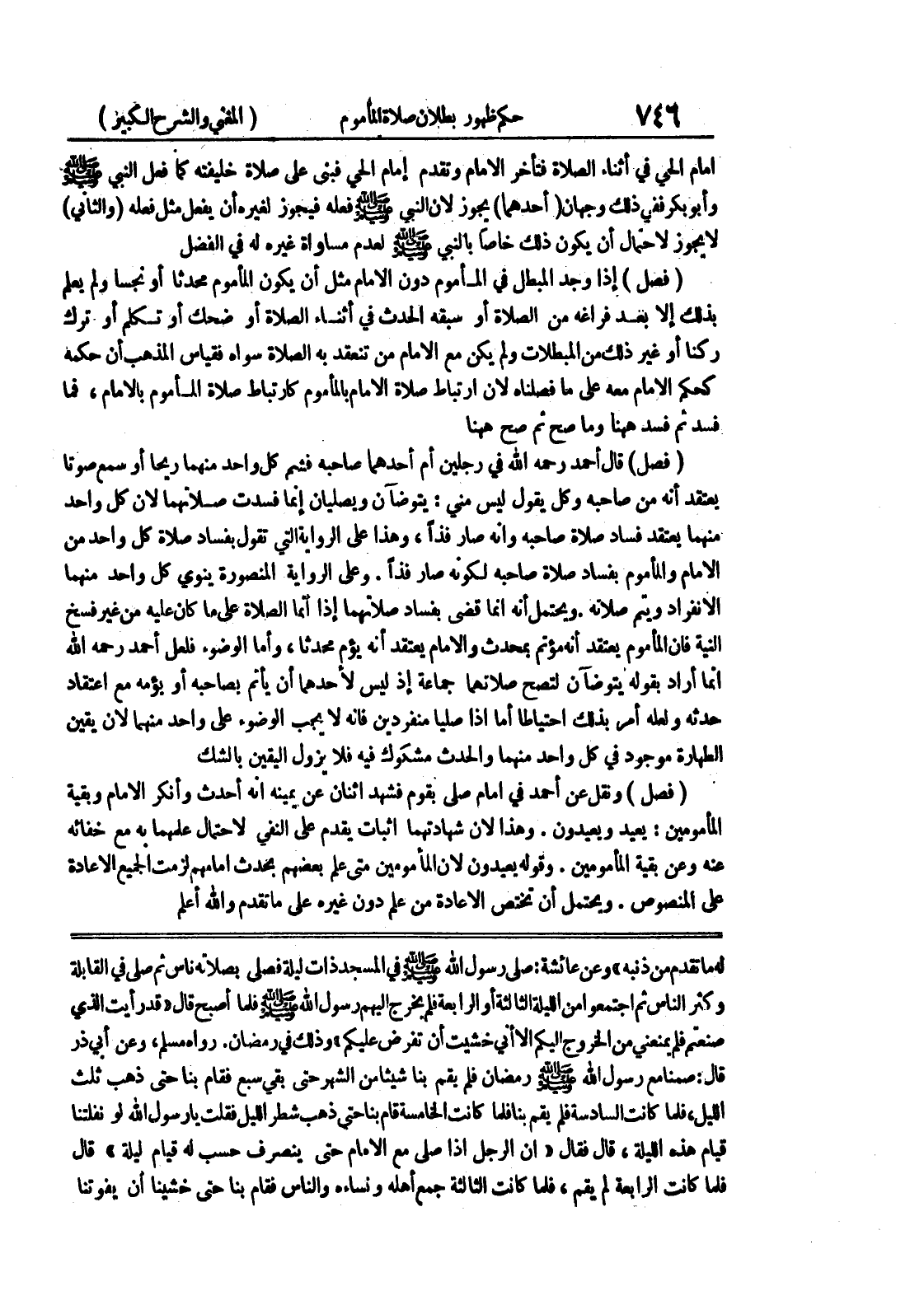 رواه مسلم، وعن أبي ذر قال: صمنا مع رسول الله صلى الله عليه وسلم رمضان فلم يقم بنا شيئا من الشهر حتى بقي سبع فقام بنا حتى ذهب ثلث الليل، فلما كانت السادسة فلم يقم بنا فلما كانت الخامسة قام بنا حتى ذهب شطر الليل فقلت يا رسول الله لو نفلتنا قيام هذه الليلة، قال فقال " ان الرجل اذا صلى مع الإمام حتى ينصرف حسب له قيام ليلة " قال فلما كانت الرابعة لم يقم، فلما كانت الثالثة جمع أهله ونساءه والناس فقام بنا حتى خشينا أن يفوتنا