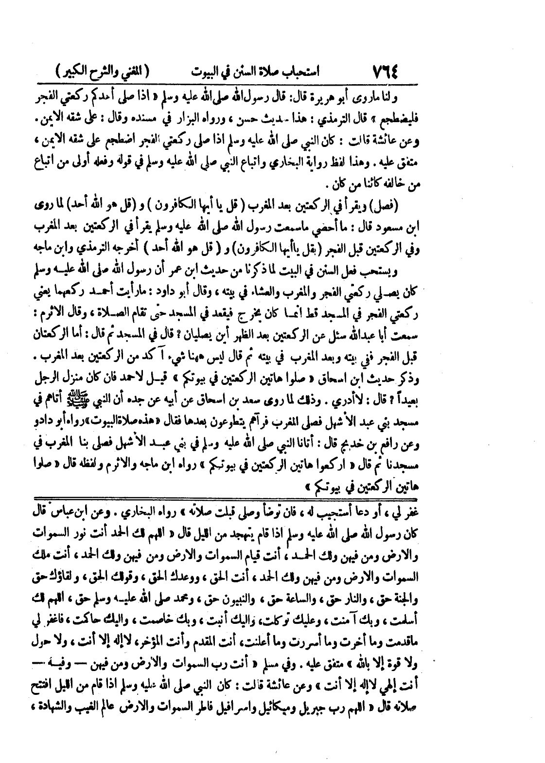 أسلمت، وبك آمنت، وعليك توكلت، وإليك أنبت، وبك خاصمت، وإليك حاكمت، فاغفر لي ما قدمت وما أخرت وما أسررت وما أعلنت، أنت المقدم وأنت المؤخر، لا إله إلا أنت، ولا حول ولا قوة إلا بالله " متفق عليه.