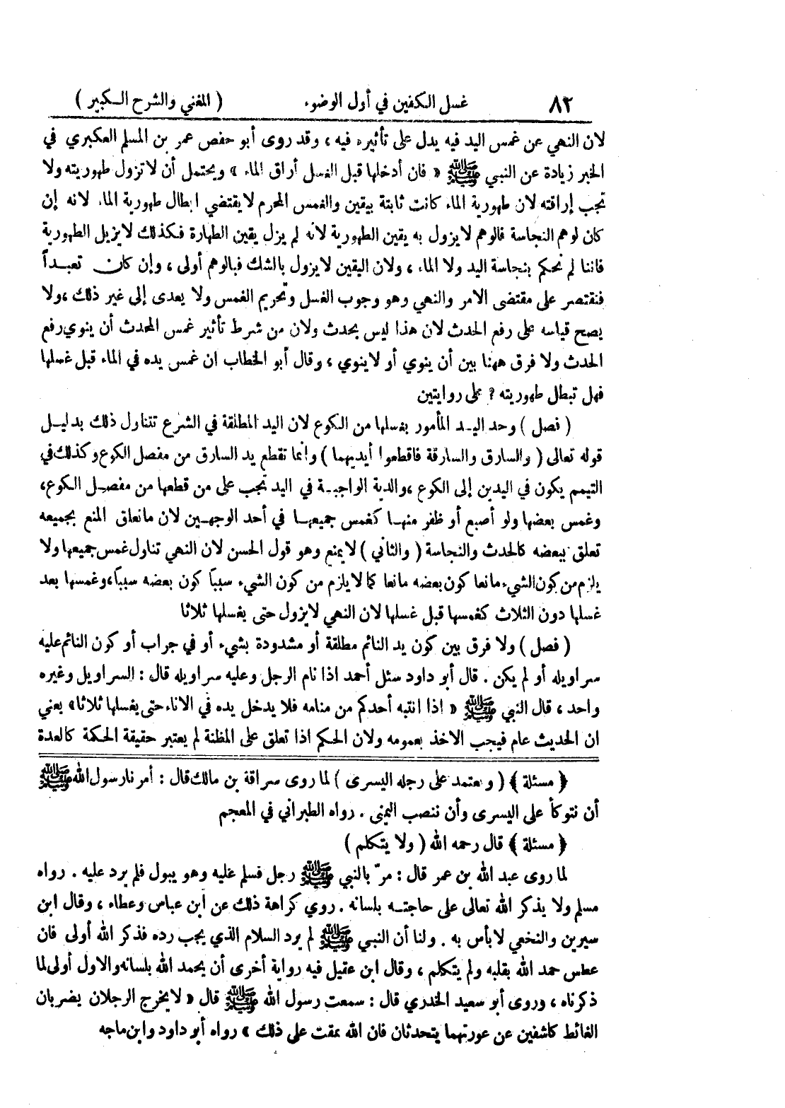 رواه الطبراني في المعجم (مسألة) قال رحمه الله (ولا يتكلم) لما روى عبد الله بن عمر قال: مر بالنبي صلى الله عليه وسلم رجل فسلم عليه وهو يبول فلم يرد عليه.